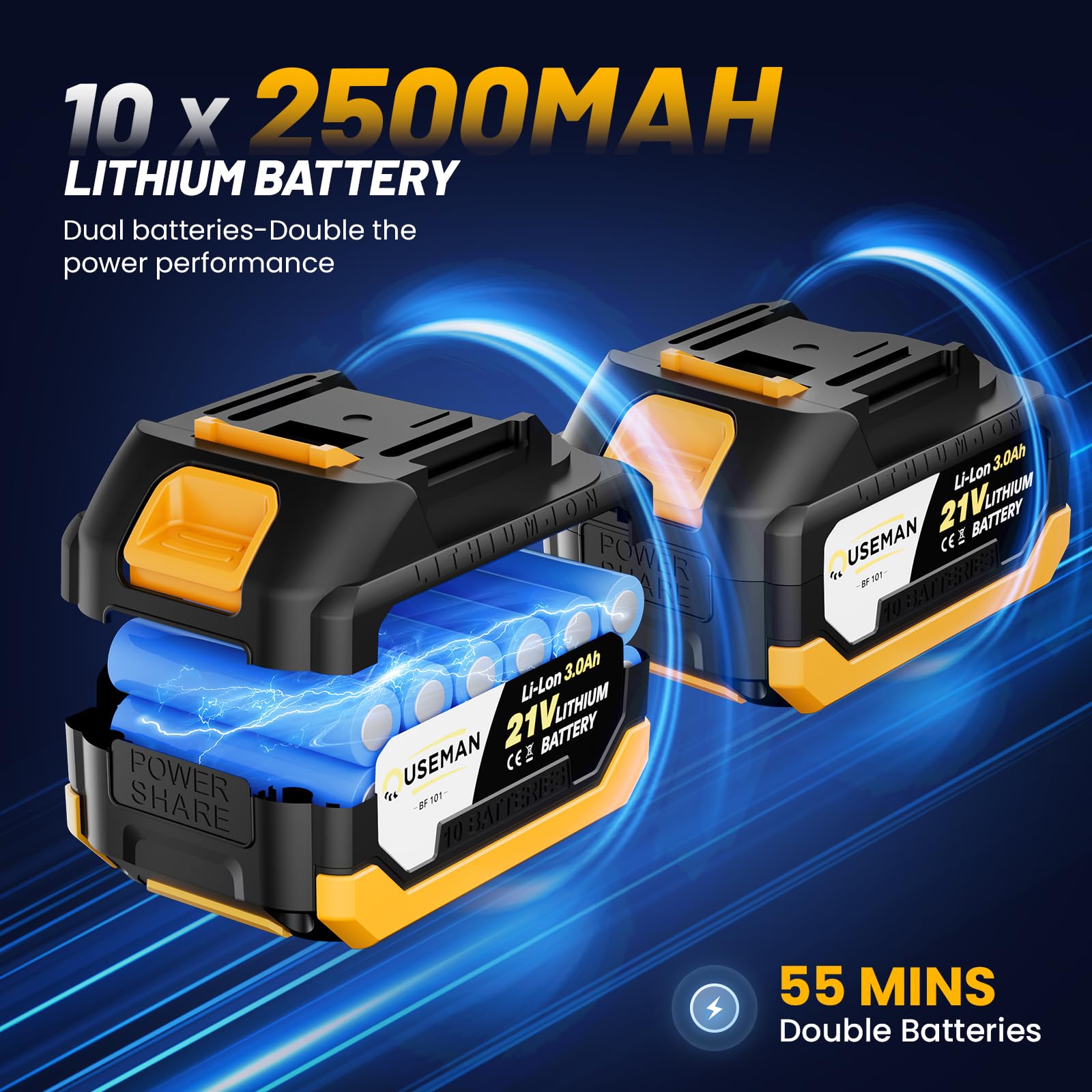 - Dual Battery Freedom - Includes 2×21V 25000mAh lithium batteries (55+ mins runtime) with power-sharing technology for continuous cleaning without interruption.