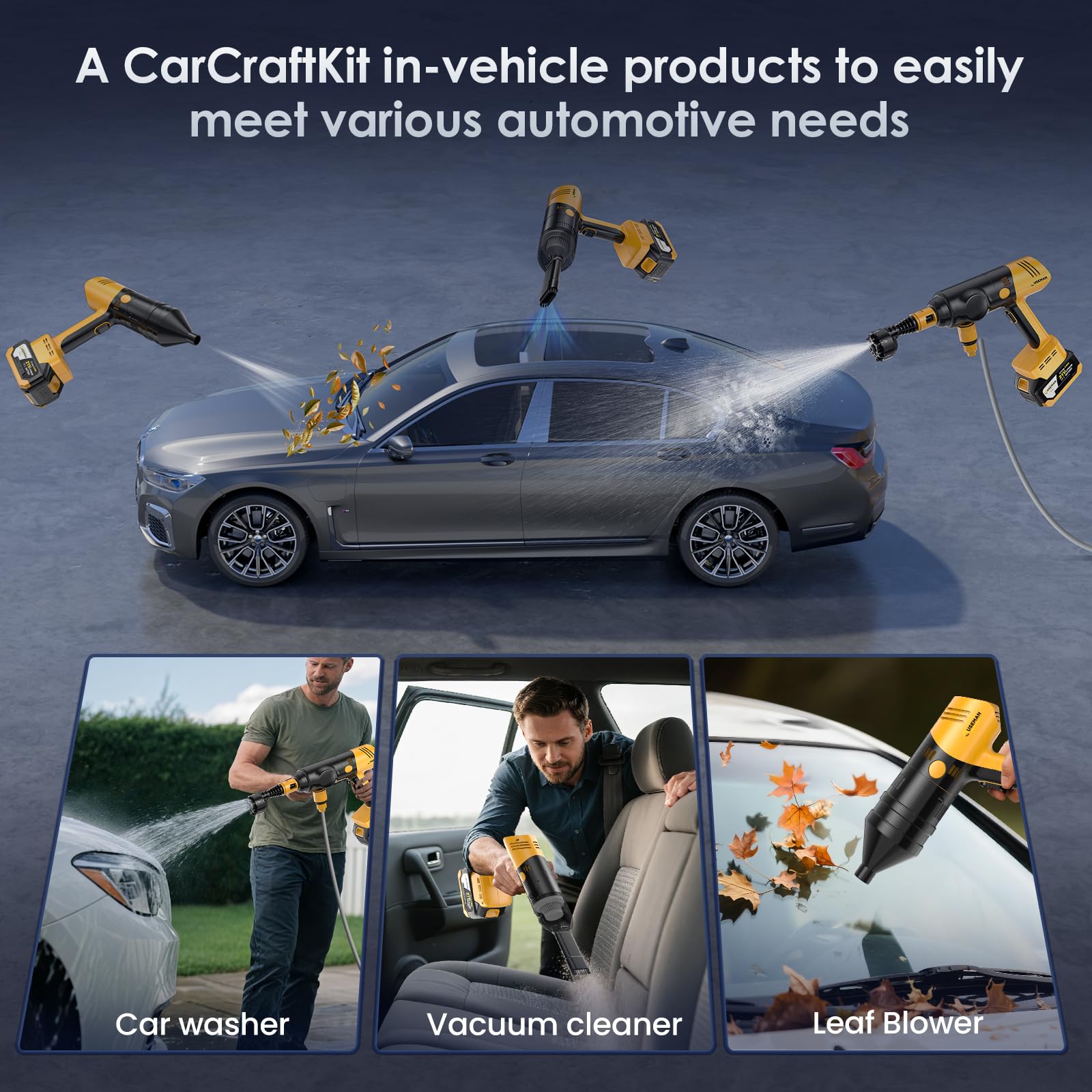 - Car Vacuum in CarCraftKit 3-in-1 Kit - Professional 20,000PA suction power reaches every corner of your interior, perfect for seats, carpets, floor mats and hard-to-reach areas with included crevice tools.
