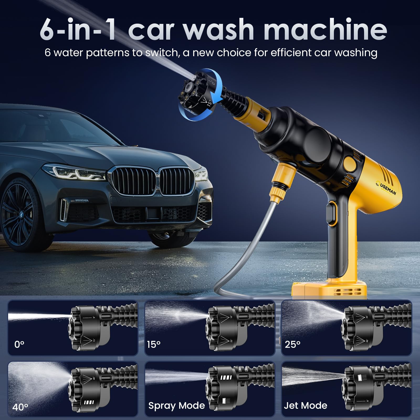- Car Washer in CarCraftKit 3-in-1 Kit - Switch between 0° pencil jet, 15°, 25°, 40°, spray and jet modes to remove tough dirt, mud and grime from your vehicle's exterior.
