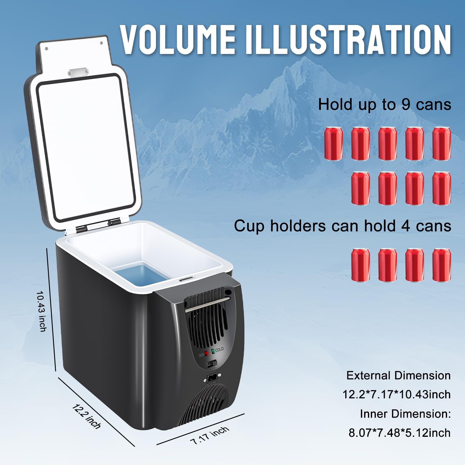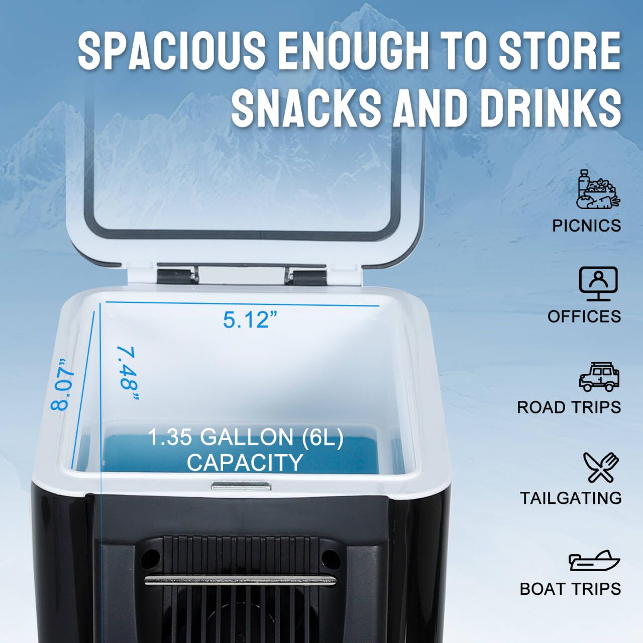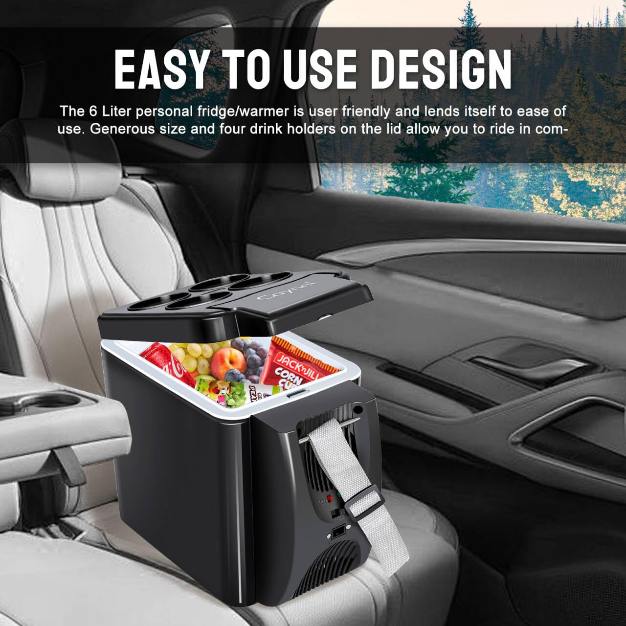 CAYNEL 12V 6 Quart Personal Thermoelectric, 6 Liter Capacity, Portable Electric Cooler Warmer with 12V DC, Small Fridge for Car, RV, and Camping Use
