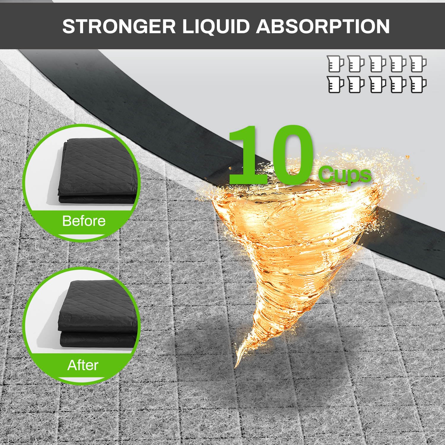 - Odor Control: The upgraded material with special charcoal in our pet training pads makes them more functional, to help eliminate and neutralize pee odors and keep your home fresh, clean, and odor-free.