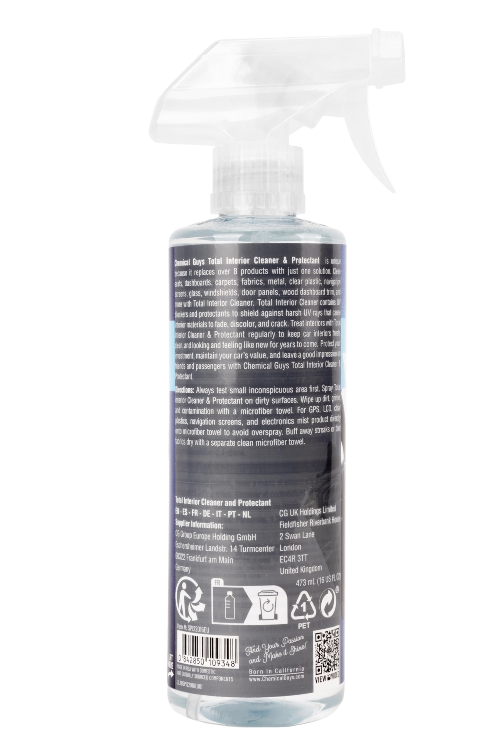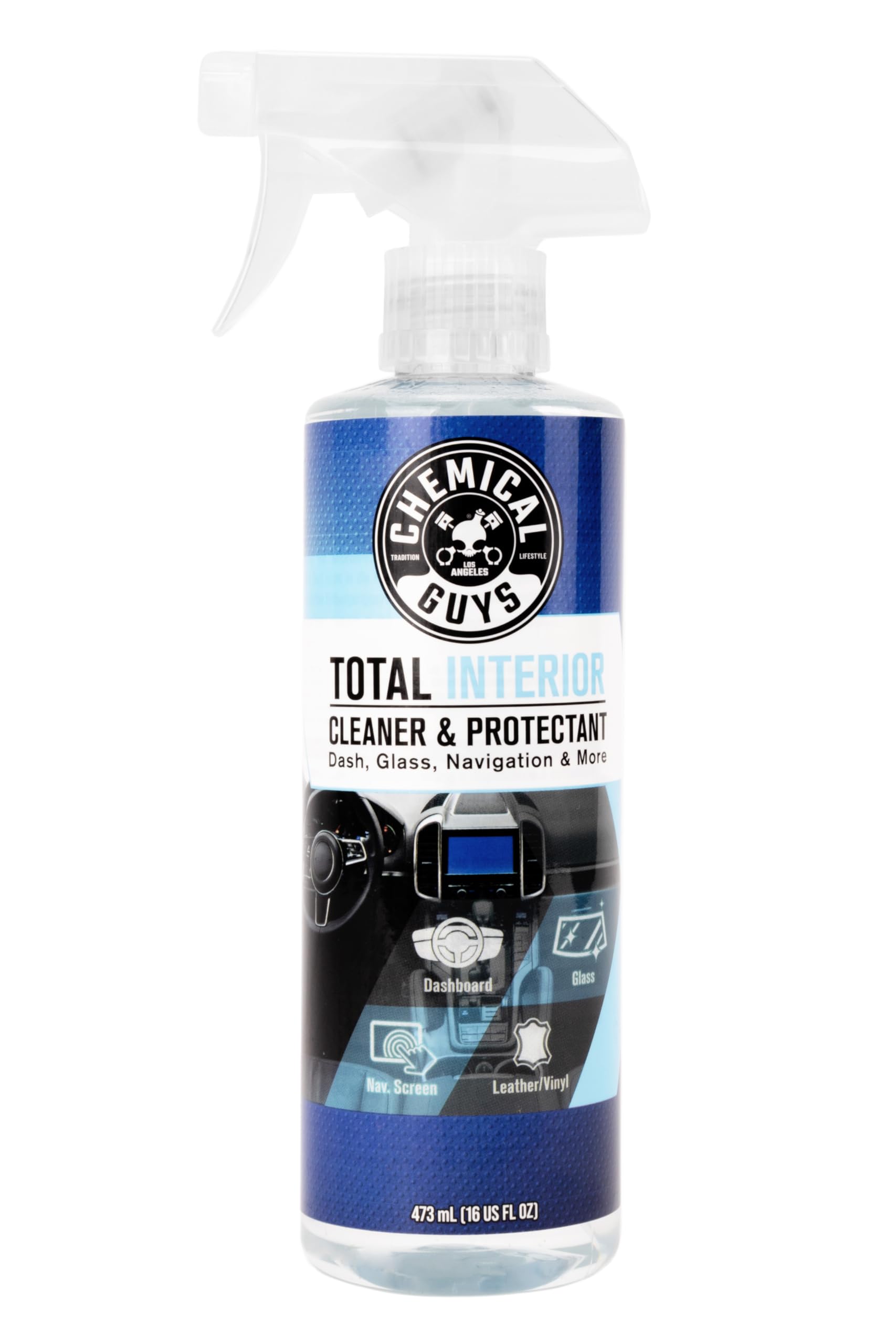 Chemical Guys Total Interior Cleaner & Protectant, Cleans & Protects Leather, Vinyl, Plastic, Rubber & Glass Streak-Free Finish for Cars, Trucks, SUVs, RVs & More - 16 oz