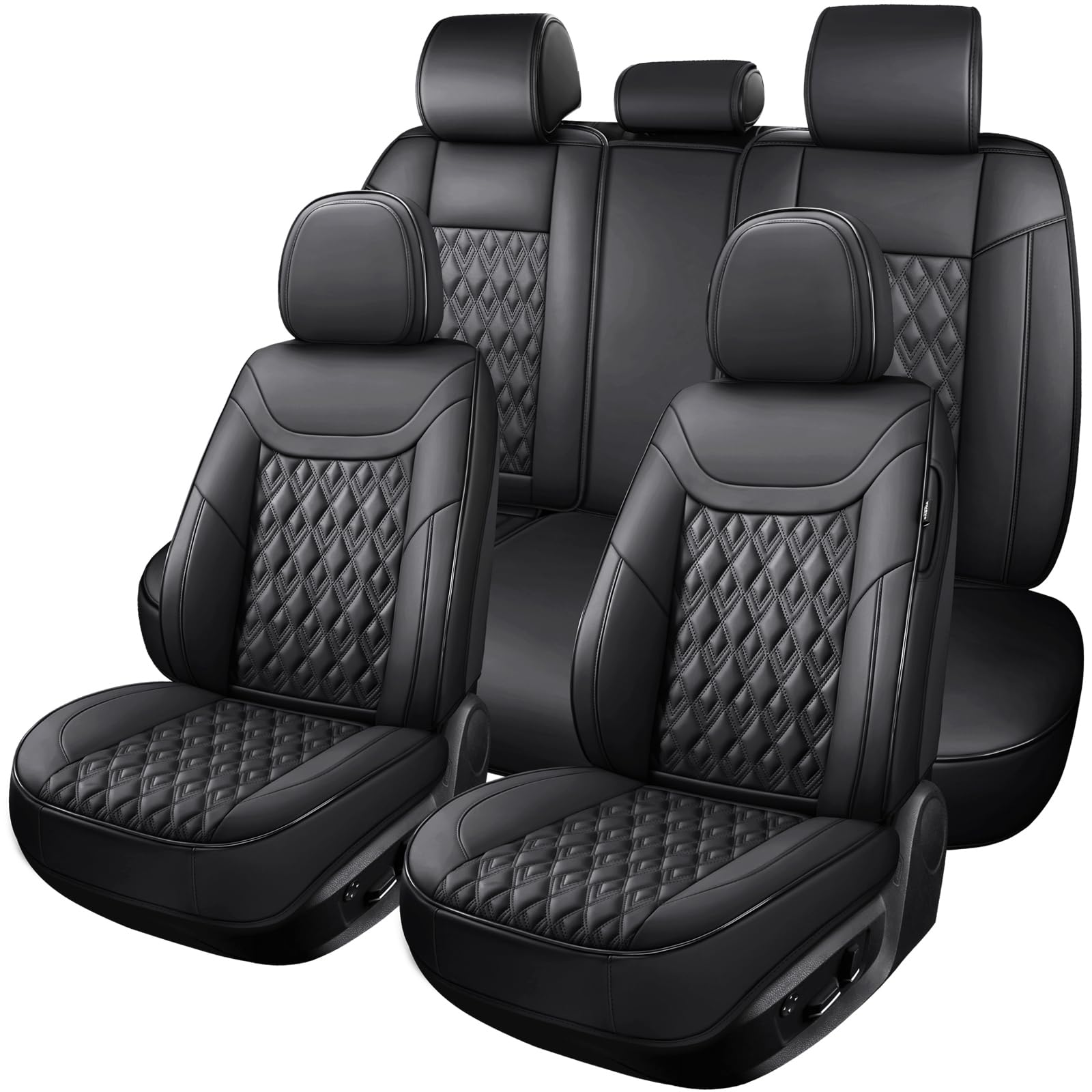COMFDRIVE Car Seat Covers Full Set, Leather Seat Covers for Cars, Car Seat Protector Waterproof, Non-Slip Car Interior Covers Fit for Most Cars, SUV, Vans, Trucks,5Seaters,Full Set,Black