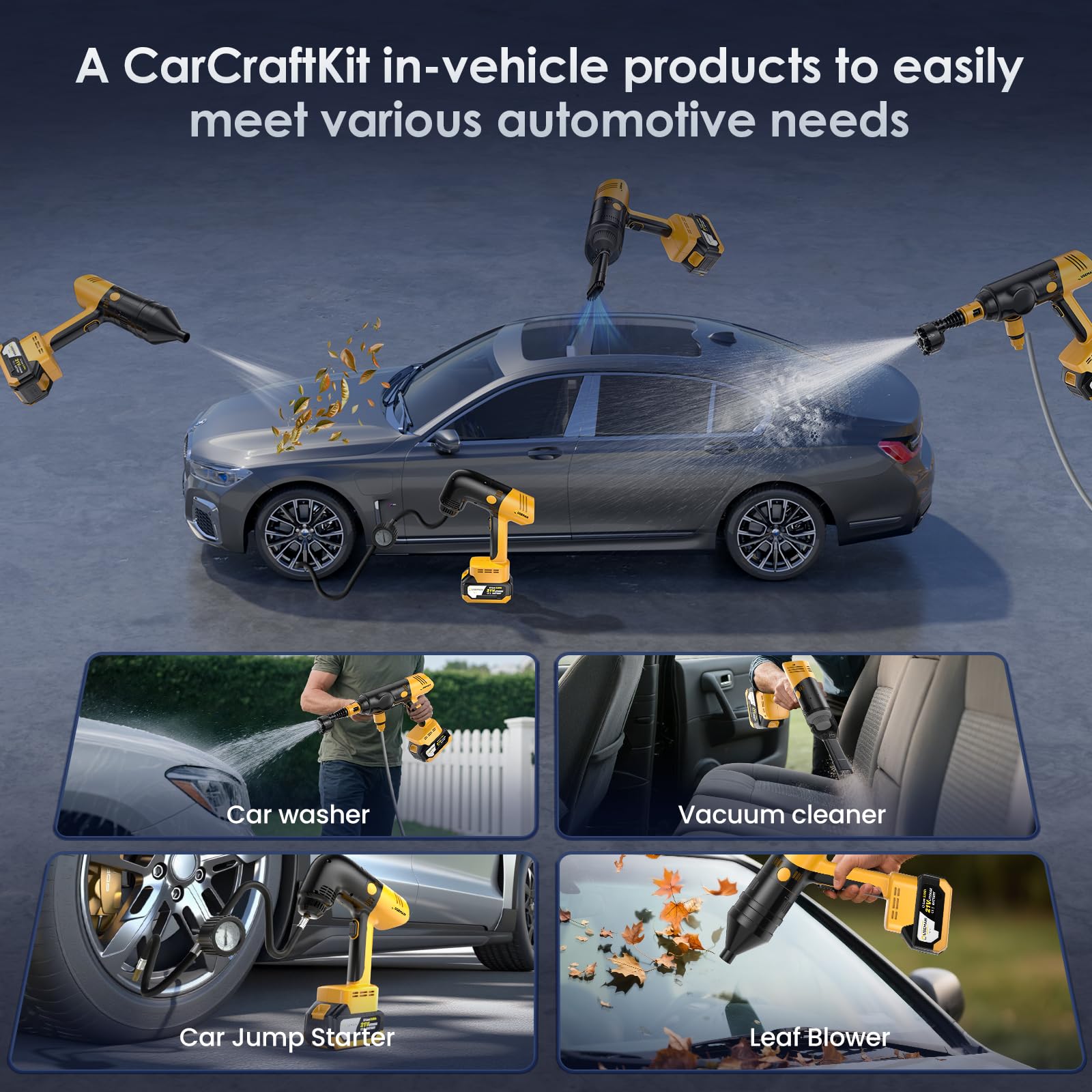 Cordless Pressure Washer 4-in-1 Kit CarCraftKit, 280 PSI High Pressure Vacuum, Tire Inflator, Air Duster, with 50000mAh Battery, 20000PA Car Vacuum Cleaner, 10000 RPM Air Duster, 150PSI Tire Inflator