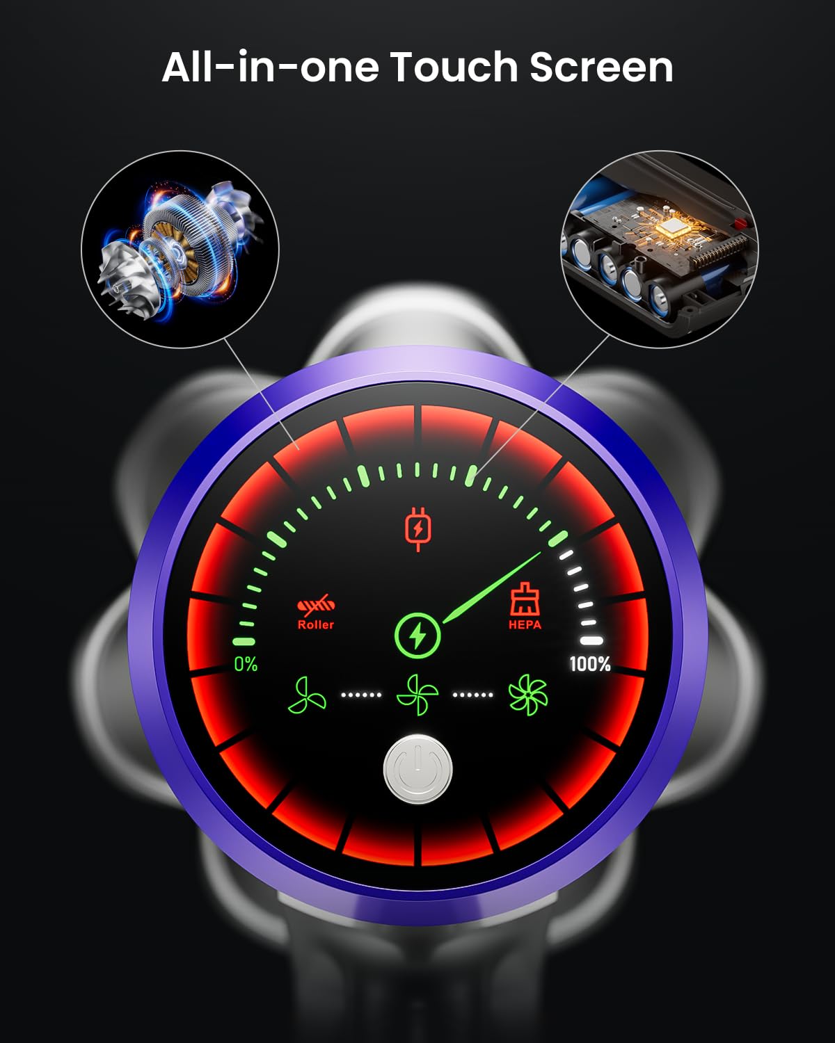 - 【Upgraded Stable 48KPA/580W Motor - Easily Handles Daily Cleaning】Equipped with an upgraded and stable 580W brushless motor, the powerful vacuum cleaner delivers suction up to 48kPa at a lower noise level. It effectively removes dust, debris, pet hair, and large particles. Suitable for daily cleaning of floors, carpets, sofas, curtains, corners, car interiors, and under furniture.