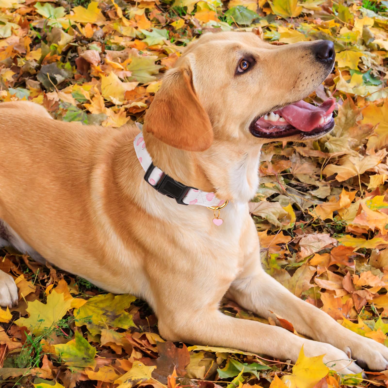 Cotton Handmade Dog Collar Cute and Distinctive Patterns White and Pink Love Heart with Pendant for Girl Boy Dogs Collars S