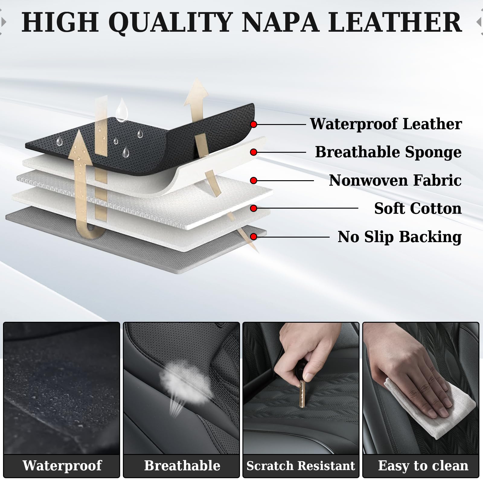 - Selected Materials: Ford f150 seat covers made of premium nappa leather, waterproof and comfortable and the seat covers can add great comfort while protect your seats from spills, stains, pet hairs and harmful UV rays
