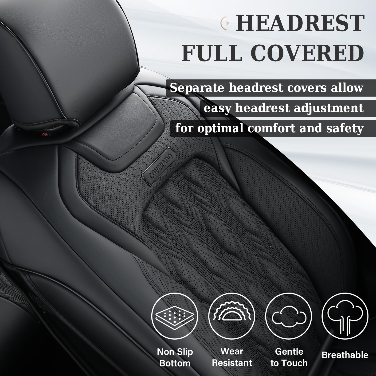 Coverado Car Seat Covers Full Set, Leather Ford F150 Seat Covers Fit for 2015-2025 F150 and 2017-2025 F250 F350 F450 Super Duty Crew Cab XL XLT Lariat King Ranch Platinum (Black)