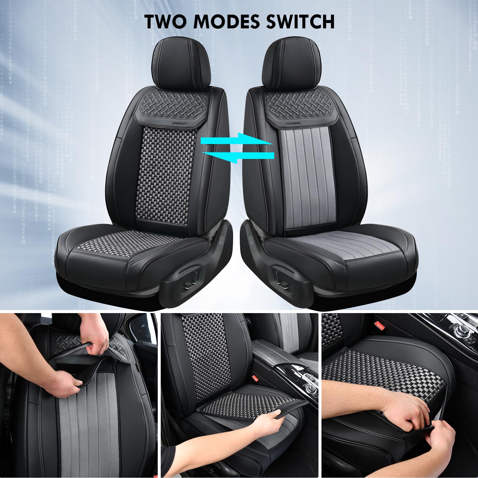 Coverado Front Car Seat Covers, Leather Seat Covers for Car, 2 in 1 Conversions Automotive Car Seat Cover Protector Universal Fit for Most Cars SUVs and Trucks(Black&Gray)