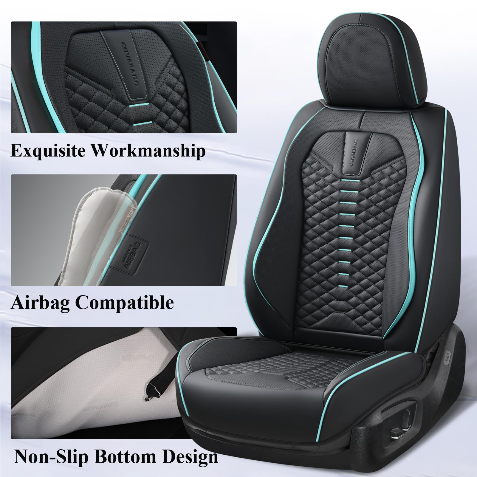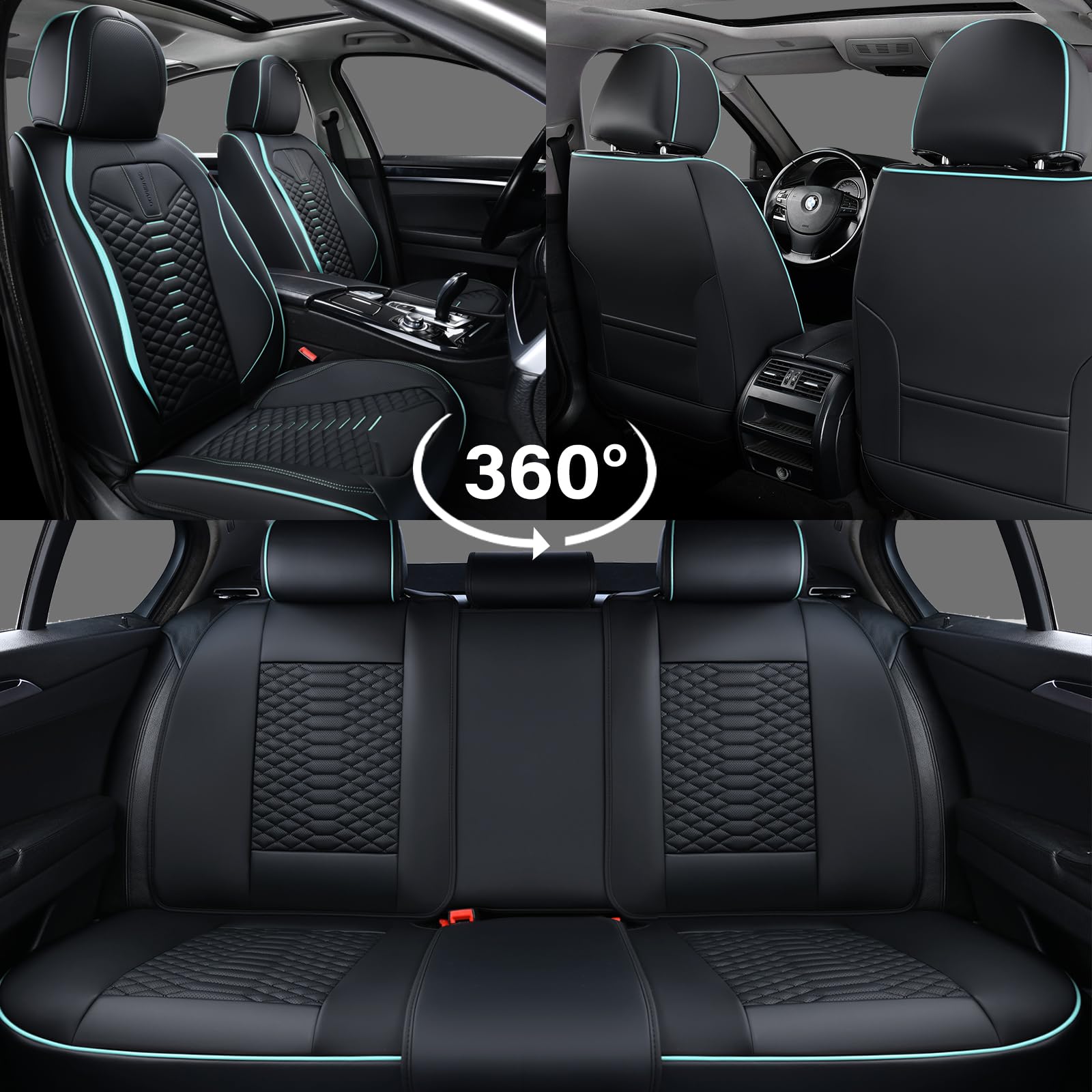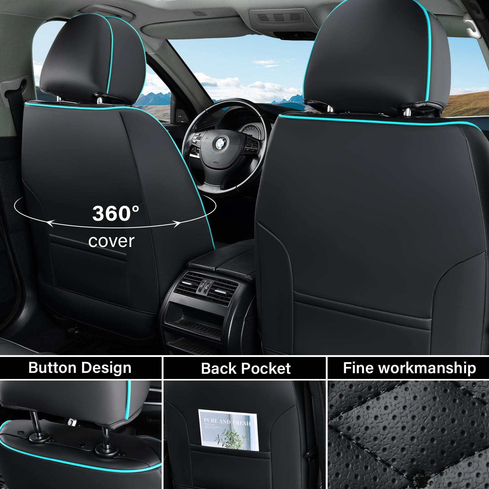 Coverado Leather Seat Covers, Car Seat Covers Full Set, Nappa Leather Seat Covers for Cars, Car Seat Protector Waterproof, Black Car Seat Cover, Universal Seat Cover Fit for Most Cars(Black&Blue)