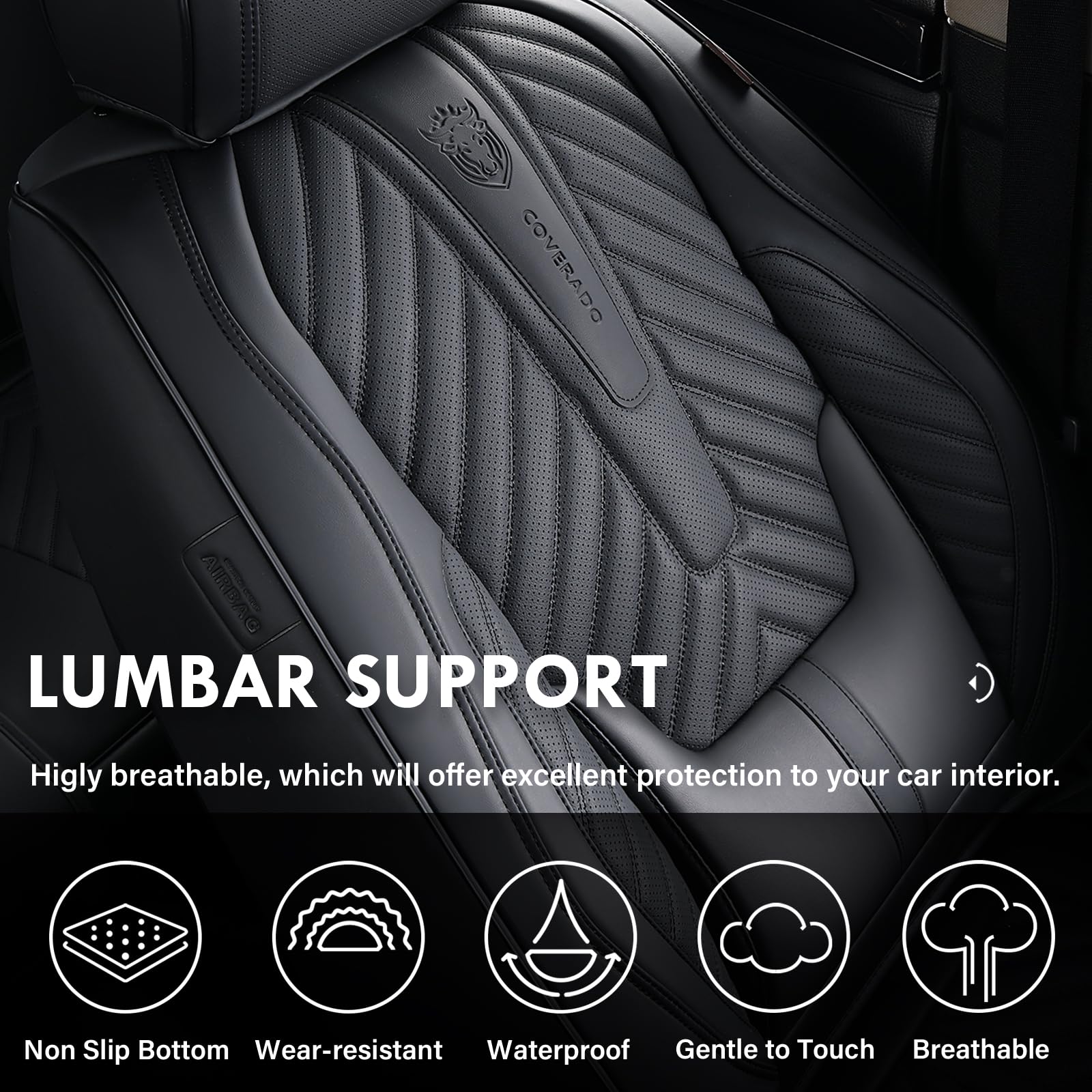 Coverado Seat Covers Full Set, Luxury Leather Car Seat Covers for Car with Lumbar Support, Automotive Seat Covers Waterproof Car Seat Protector Universal Fit for Most Cars SUV Truck(Black)