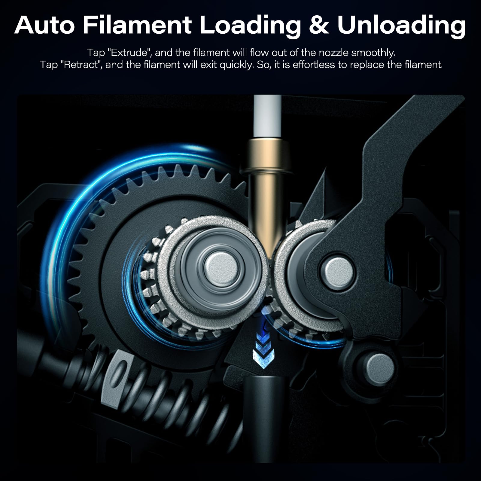 - 【Auto Filament Loading and Unloading】Simply tap 'Extrude' for smooth filament flow or 'Retract' for quick filament removal, making filament replacement a breeze.