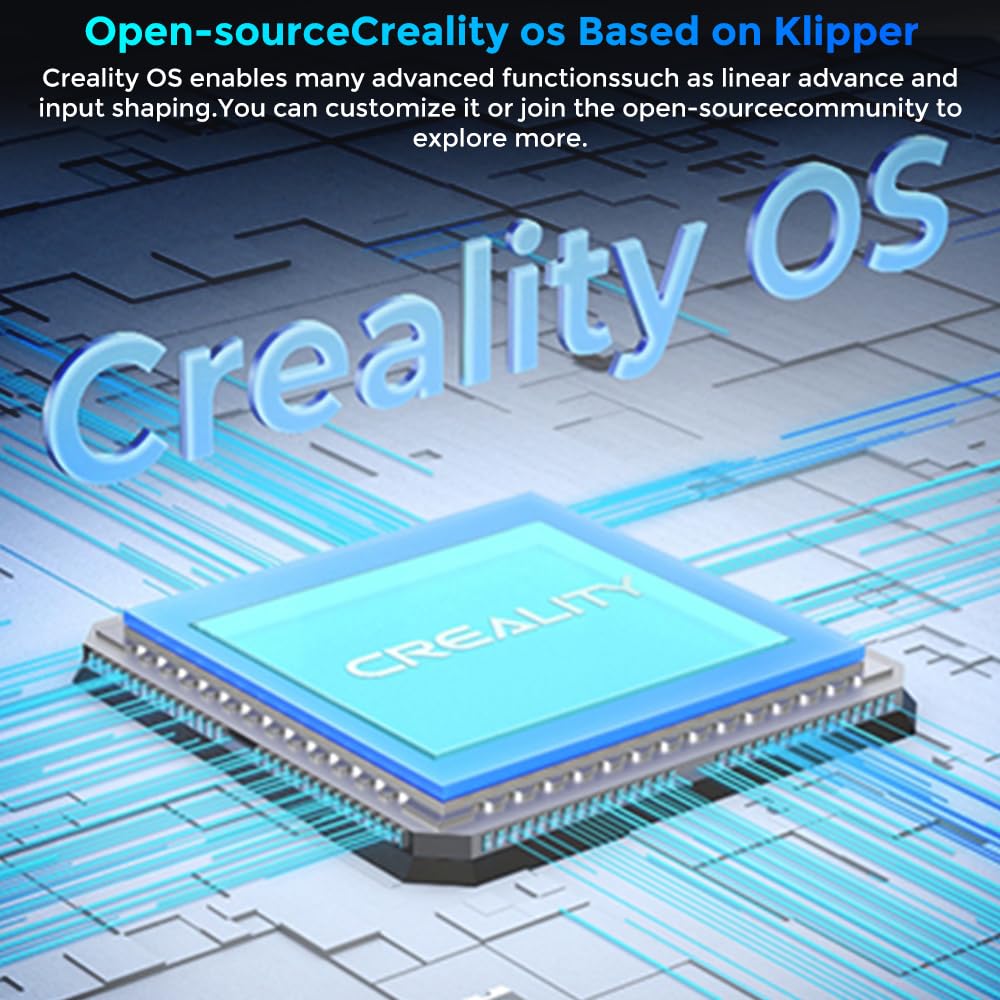 - All-metal Solid Frame and Open-source Design: K1 SE has a super rigid frame with parts made by integrated die casting. It also features corner gussets and crossbeams on both sides for reinforcement. It operates truly stably with minimal shaking. K1 SE's structure can be creatively modified by adding 3D-printed side panels, a side spool holder, and more. The reserved USB ports can be easily connected to a web camera. Freedom to add 3d printed side panels, a USB webcam, and so on. Also, more possibilities with the open-source Creality OS based on Klipper