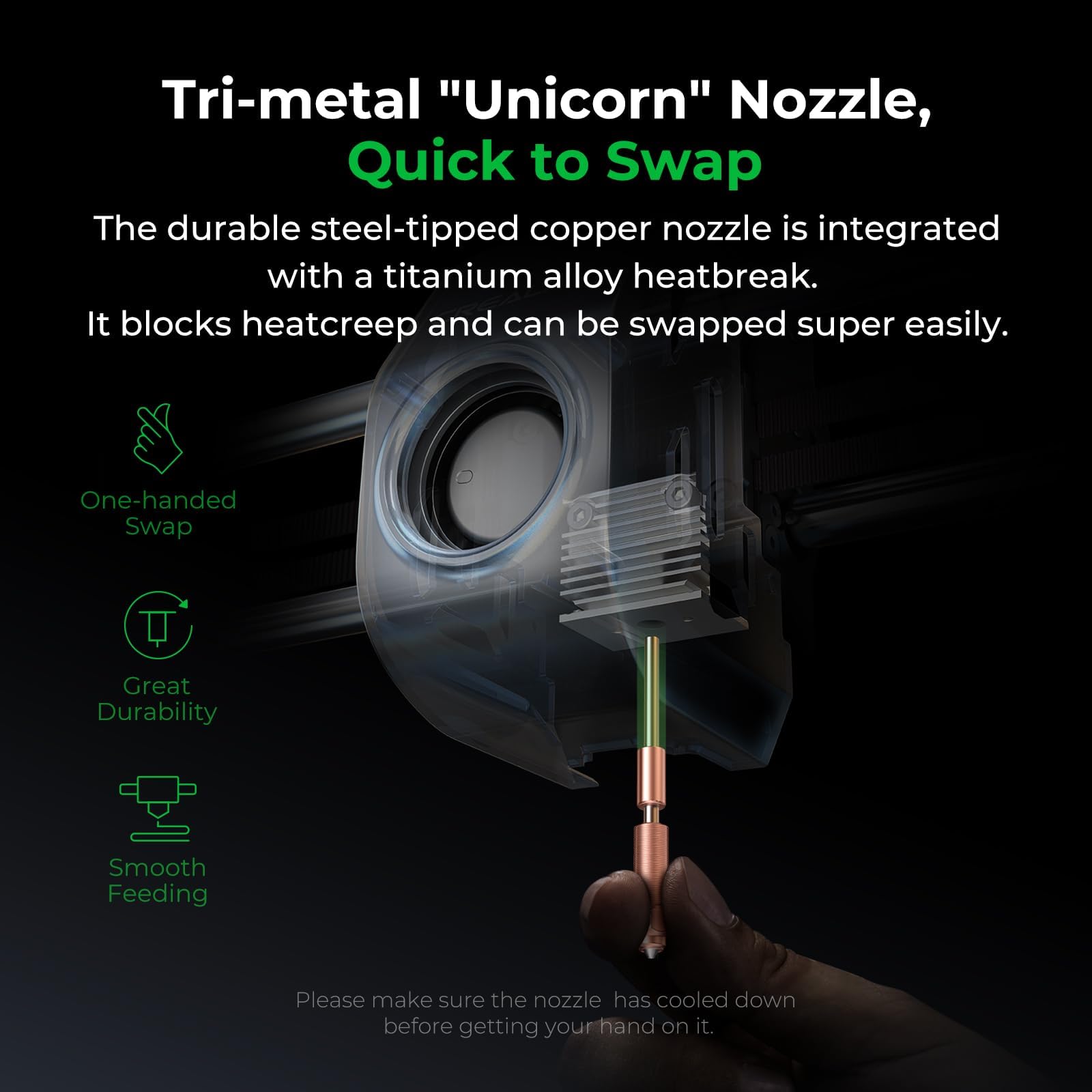 - 【Clog-free Direct Extruder & Tri-metal 'Unicorn' Nozzle】Creality K1C is an upgraded version of K1 SE, K1 and K1 Max. It has more powerful functions and supports printing carbon fiber filaments. K1C 3d printer equips a clog-free robust direct extrude, enhanced with a bolster spring and a ball plunger.It forms a strong grip, enhanced reliability that won't slacken off. Steel-tipped copper nozzle integrated with a titanium alloy heatbreak.It is free of clogs and can be swapped quickly.