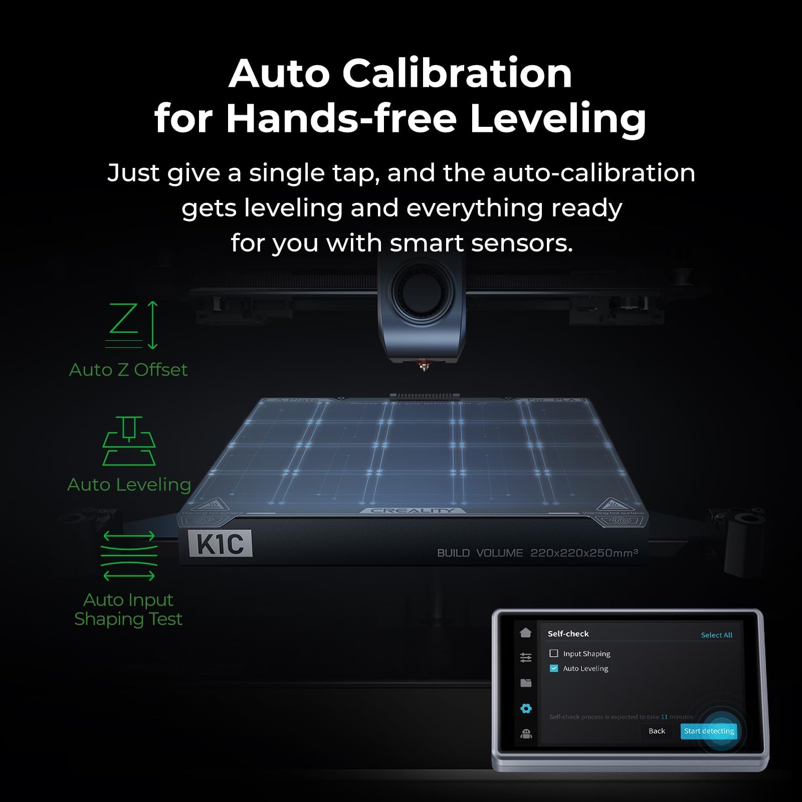 - 【Hands-free Auto Calibratio Leveling & Dynamic Balancing for Reduced Vibration】Just give a single tap, and the auto-calibration gets leveling and everything ready for you with smart sensors. The weight of printhead fans is dynamically balanced so they are less likely to wobble, minimizing ringing or ghosting.