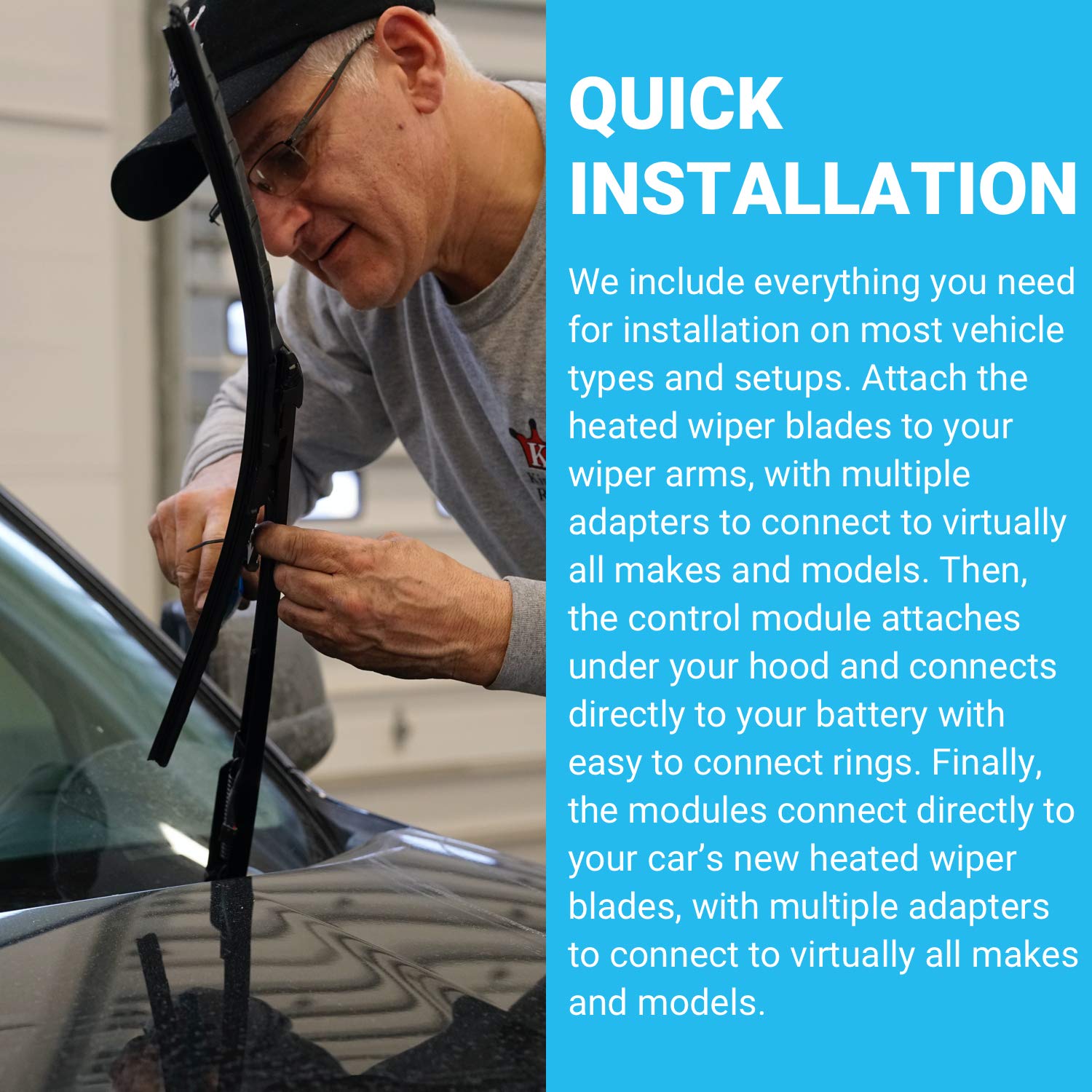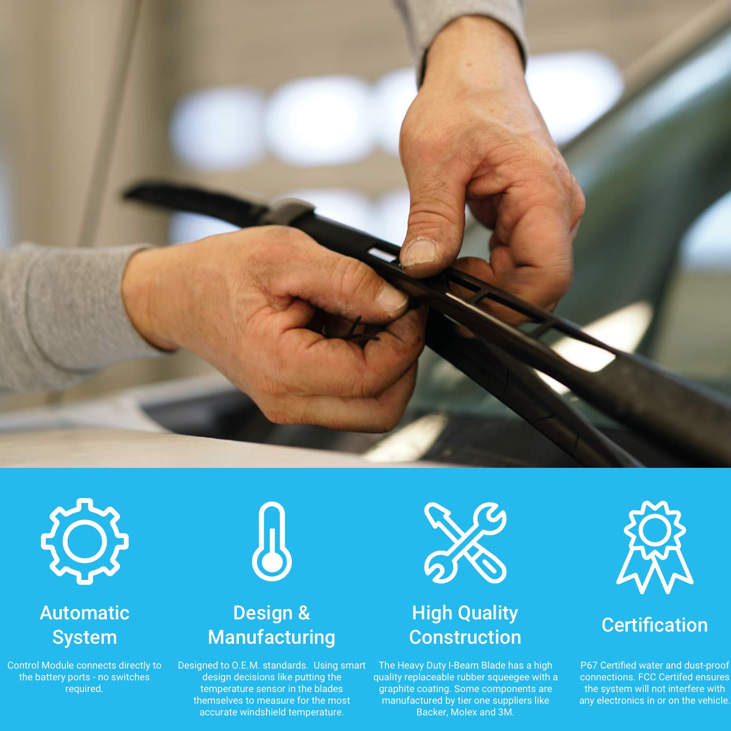 - COMPLETE VEHICLE SYSTEM: Quick, easy to install, and designed to OEM standards. CRYSTAL CLEAR automatic windshield deicer vehicle kit includes two heated wiper blades, a 3M mounting system, and control module—everything you need for safer, clearer views this winter.