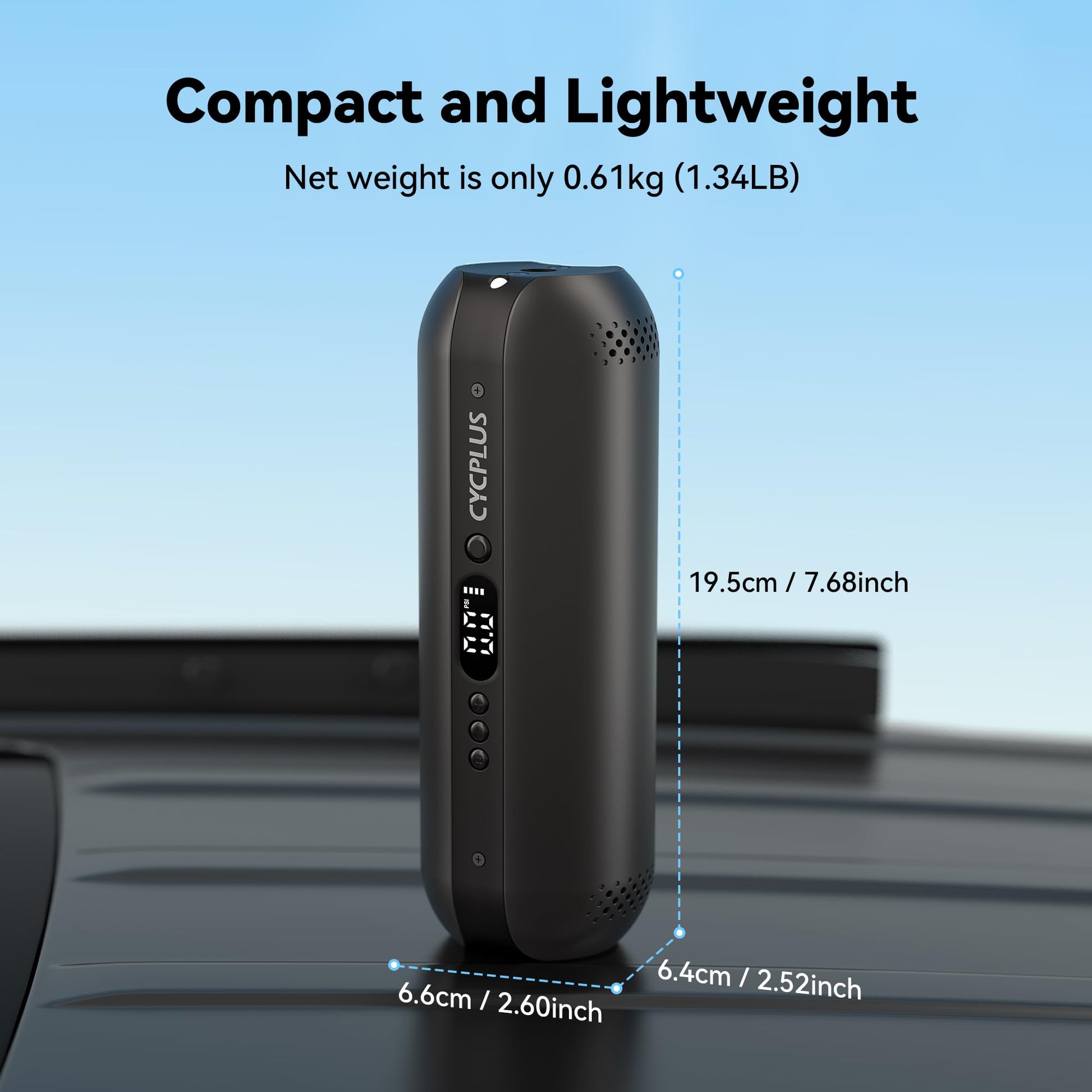 CYCPLUS Tire Inflator Portable Air Compressor - 150PSI Cordless Air Pump with Digital Tire Pressure Gauge, Accurate LCD Display & LED Light, DC/AC 2-in-1 for Car/Motorcycle/E-Bike/Ball(2025 Version)