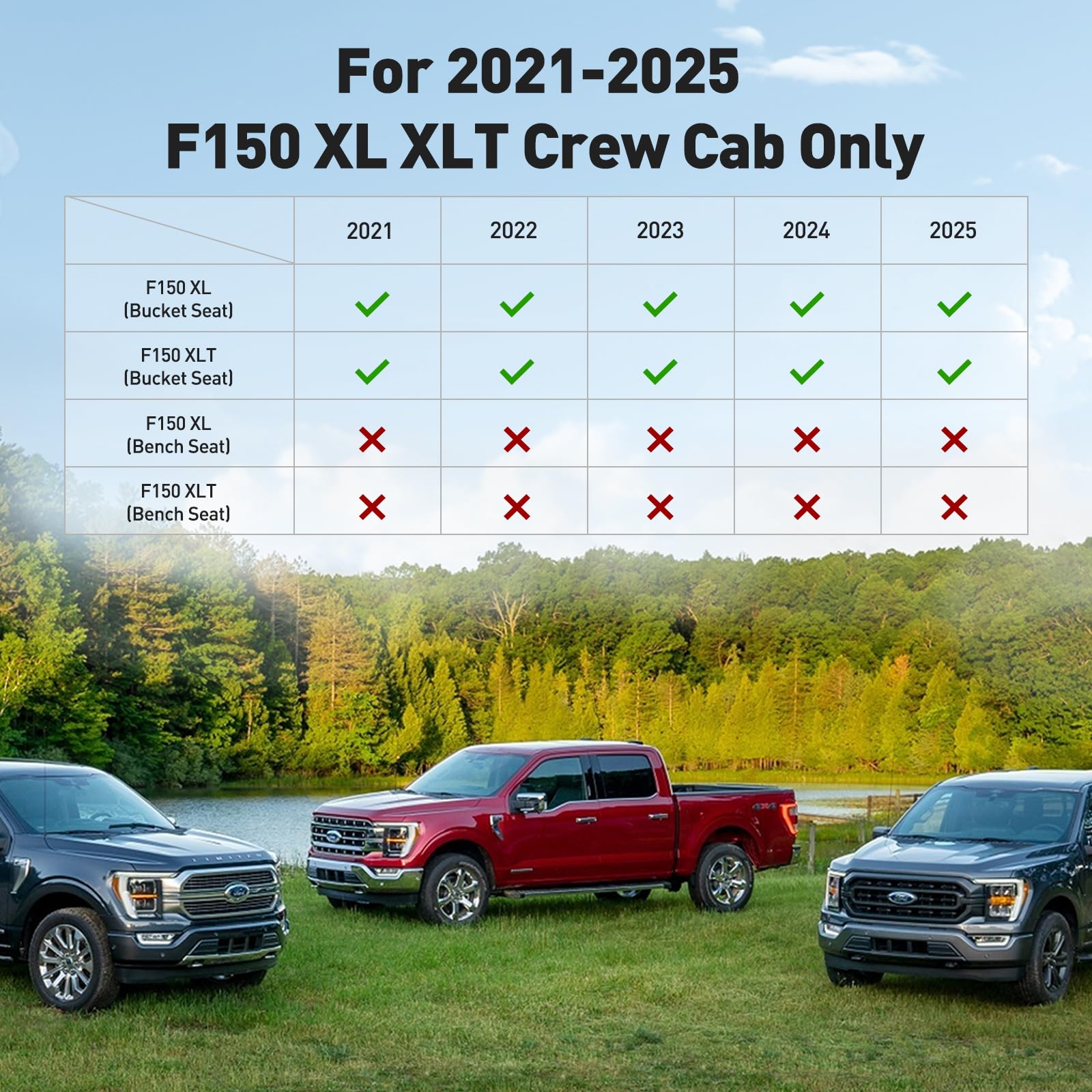- đăCustom DesignăDiffCar for Ford F150 Seat Covers only compatible with 2021 2022 2023 2024 2025 trucks for F150 Super Crew/Crew Cab (XL,XLT). Unlike the other universal fit cheap seat covers, our seat covers are a special OEM design to cover each inch of your truck for F-150 and protect your investment. Making your interior look luxurious and special