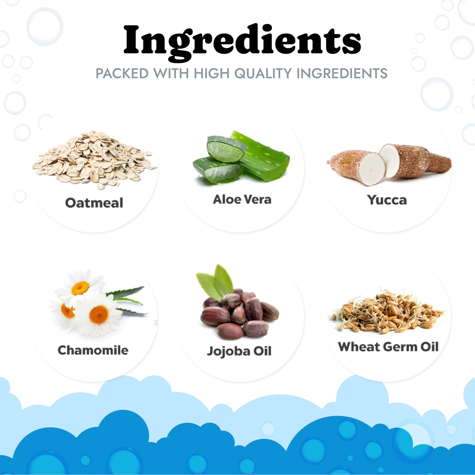 - GENTLE ON SENSITIVE, IRRITATED SKIN & HOT SPOTS - Does your pet have sensitive, irritated skin or hot spots? Oatmeal, Aloe Vera, Yucca, Chamomile, and Jojoba Oil all have anti-inflammatory properties and can help soothe sensitive skin. We all know what it’s like constantly watching them to make sure they stop scratching their skin raw.