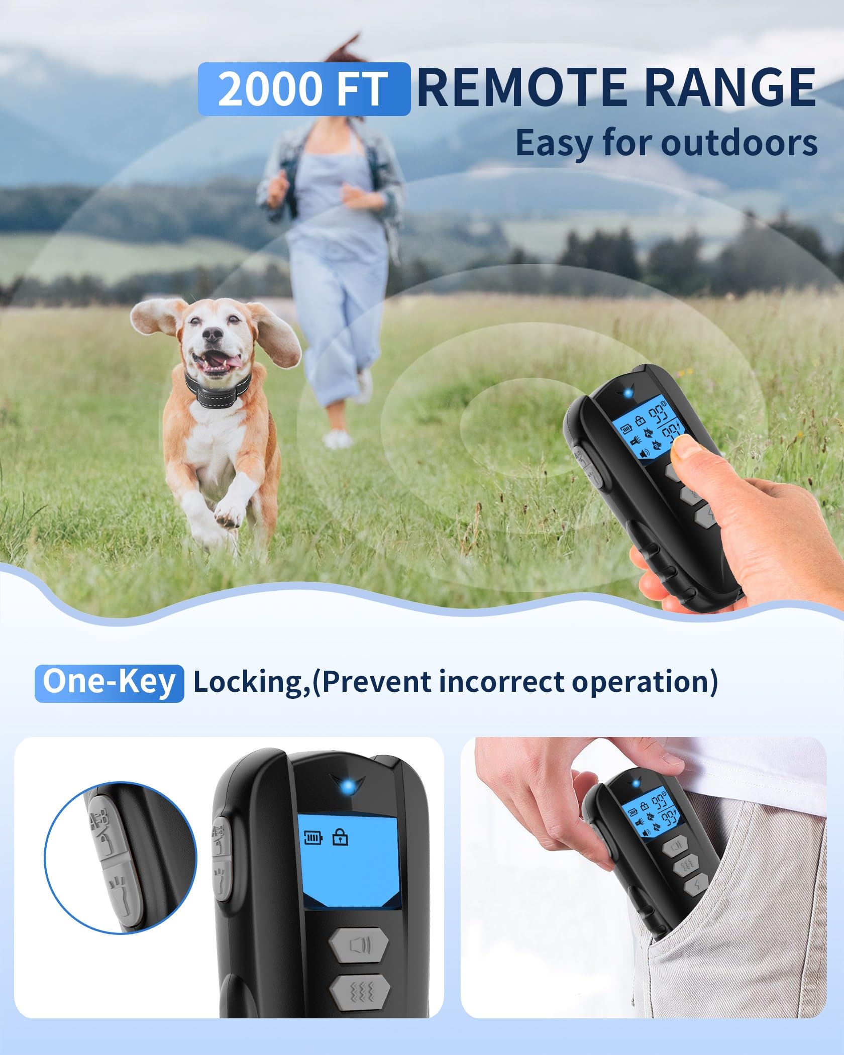 - 【Extended 2000FT Range & Dual-Channel Design】 Experience unparalleled control with WUJ’s dog training collar with remote that boasts a 2000FT range, perfect for indoor and outdoor training. Dual-channel functionality lets you train two dogs simultaneously, ensuring flexibility for multi-pet households. Say goodbye to communication gaps with this e collar for dogs training
