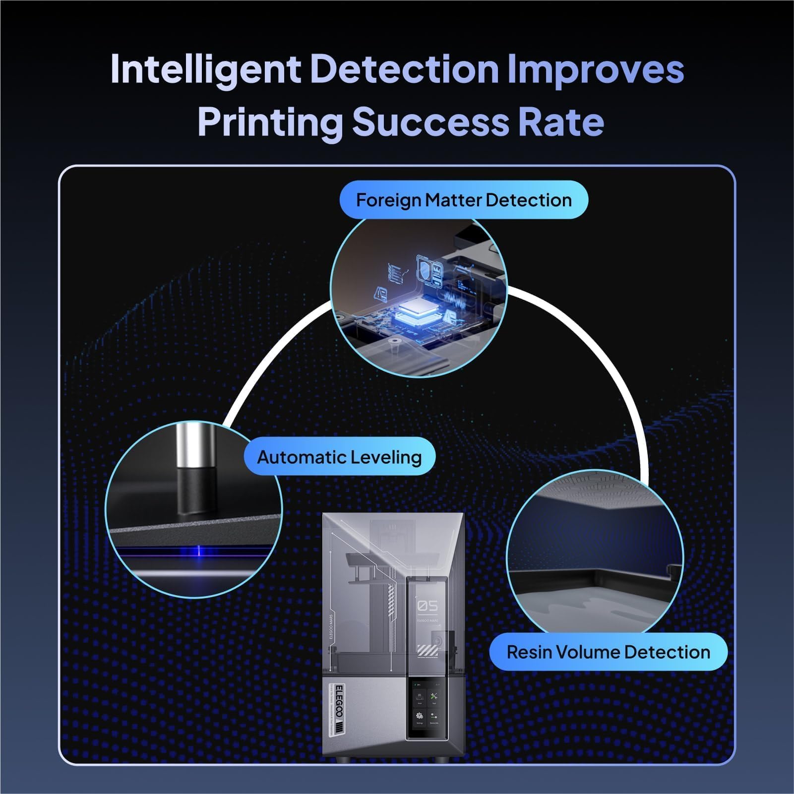 - 【Intelligent Mechanical Sensor】Supports residue detection, and the intelligent mechanical sensor can avoid irreversible damage to the LCD screen. At the same time, it can issue alarms in time for insufficient resin, leveling failure, etc., further ensuring the smooth progress of printing and eliminating various difficulties from the source.