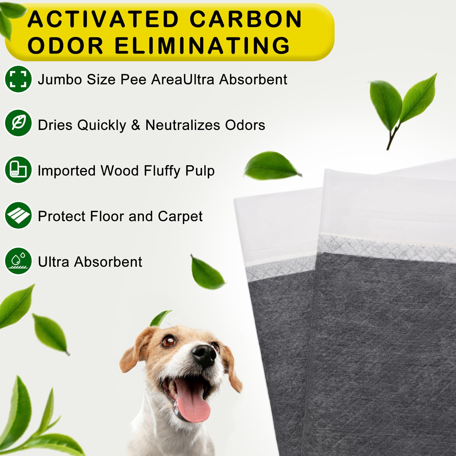 - 【Activated Carbon Deodorizes and Freshens the Air】 50% extra thick dog pee pad, super adsorption capacity activated carbon helps eliminate and neutralize any strong and unpleasant odors, giving you fresh, clean and odor-free air all day long when you You will no longer experience unpleasant odors when potty training your pet or caring for an incontinent puppy.