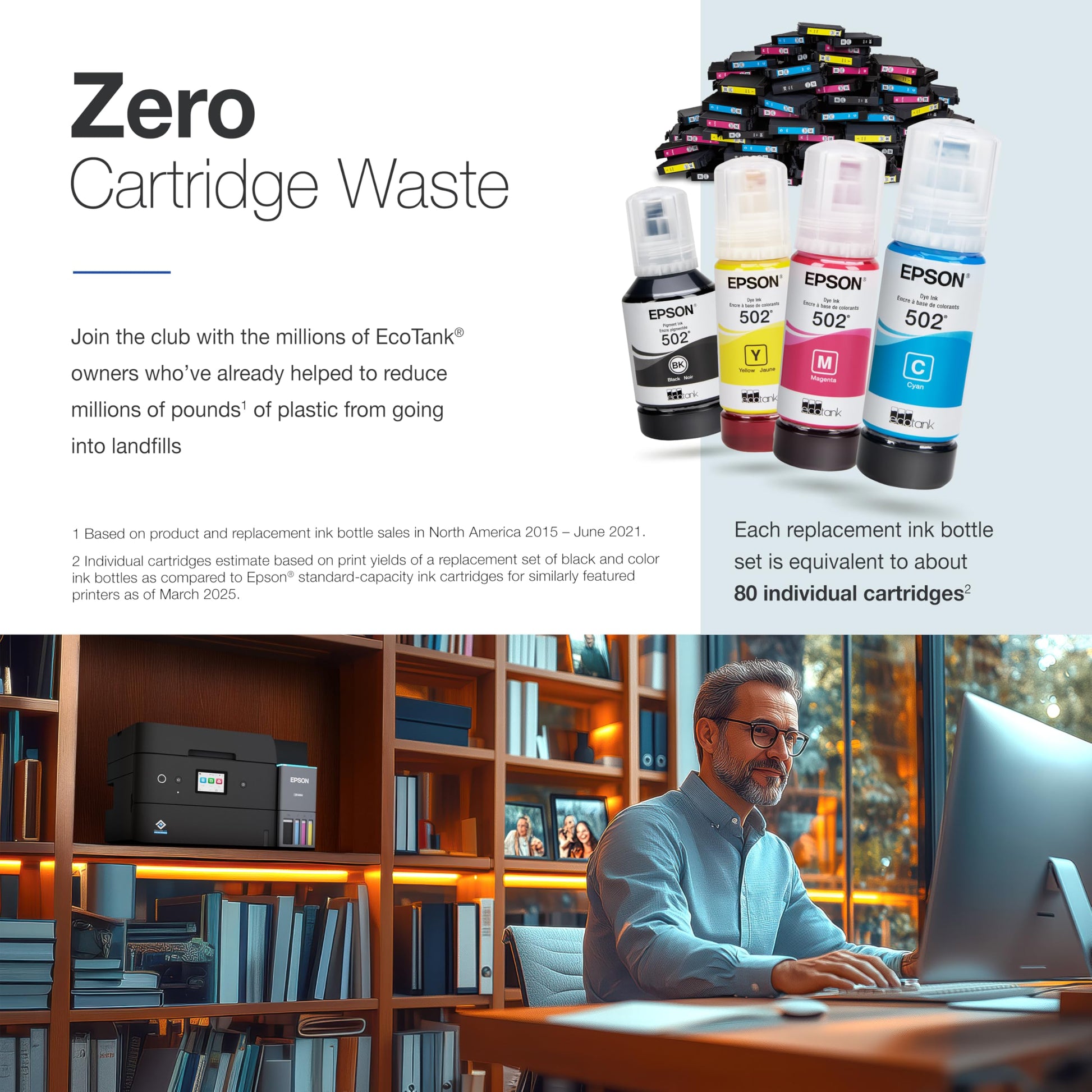 - ZERO CARTRIDGE WASTE — Join the club with the millions of EcoTank owners who’ve already helped to reduce millions of pounds¹¹ of plastic from going into landfills