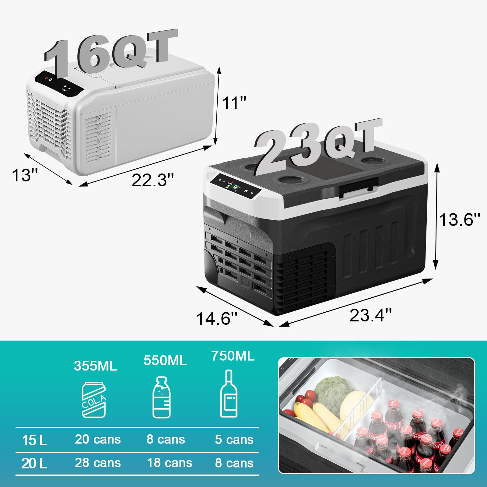 - 【Dual-Mode Smart Cooling】15L(16QT) portable car refrigerator features ECO mode (32℉-68℉) for food preservation & MAX mode (-4℉-32℉) for freezing. Adjustable between -4℉-68℉ with 15-minute fast cooling (68℉-32℉). Ideal for camping, road trips, RV, truck, or boat use—keeps drinks chilled, groceries fresh.