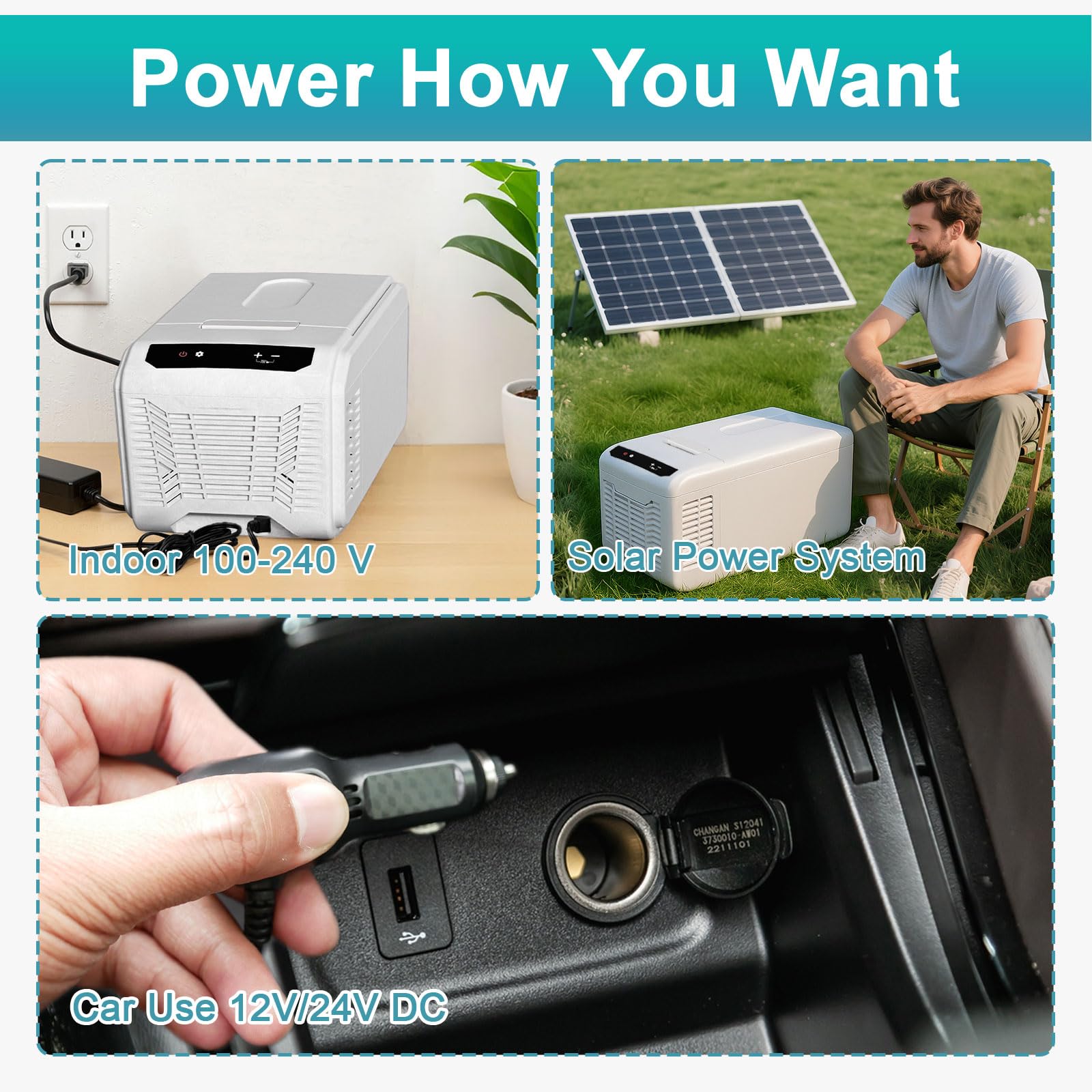 - 【Versatile Power & Battery Protection】Runs on solar panels, 12V/24V car outlets, or 100-240V AC home current - includes all necessary cables for immediate use. Features advanced 3-level voltage monitoring that automatically adjusts power to prevent vehicle battery drain, making it ideal for long trips or overnight use without worrying about dead batteries. The ultimate power solution for cars, RVs, trucks and off-grid adventures.