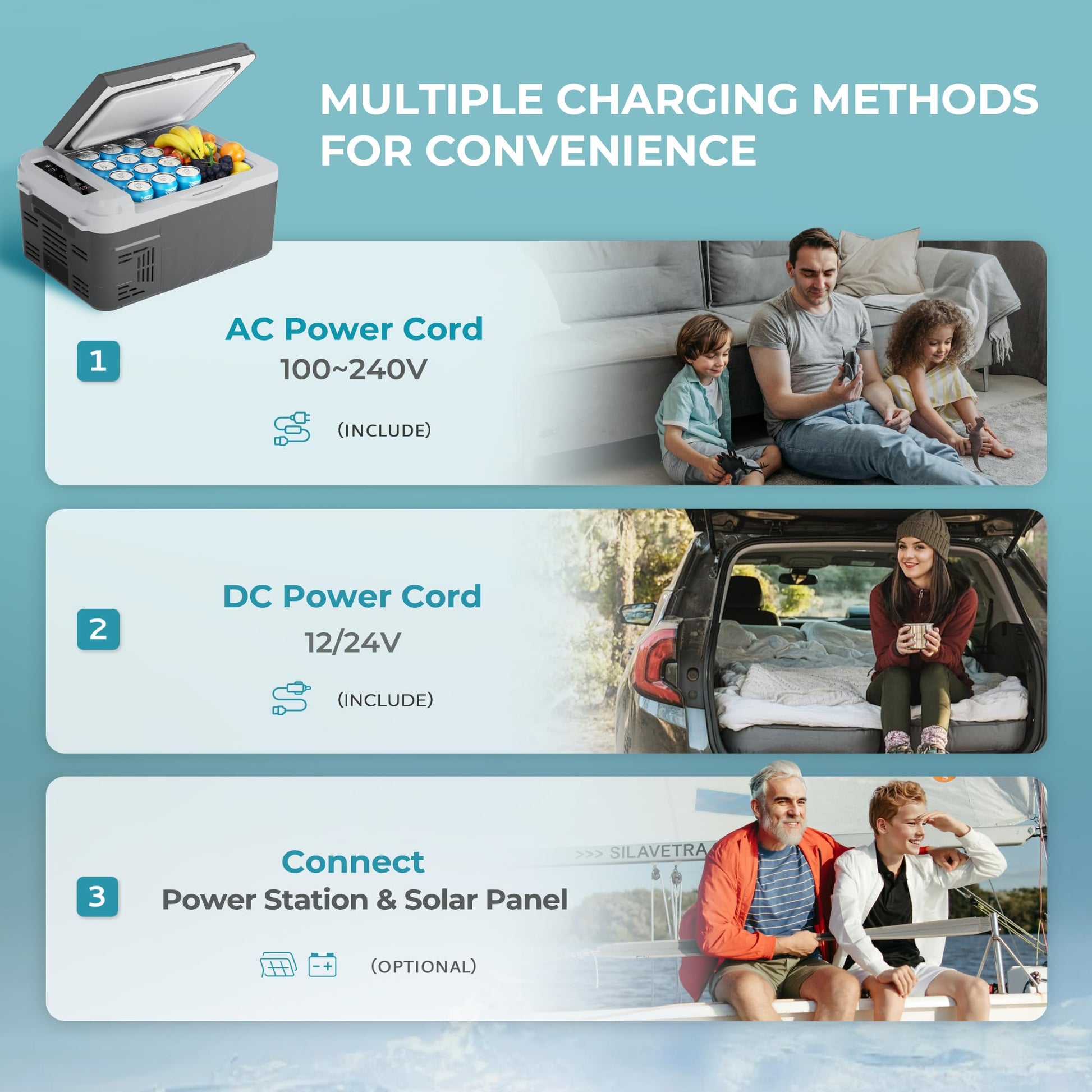 - Battery protection and multiple power sources: This camping fridge offers 3 level battery protection, allowing you to adjust the input power between L/M/H modes to prevent overload or vehicle battery drain. The 12v fridge can be powered by both DC and AC, suitable for a variety of scenarios.