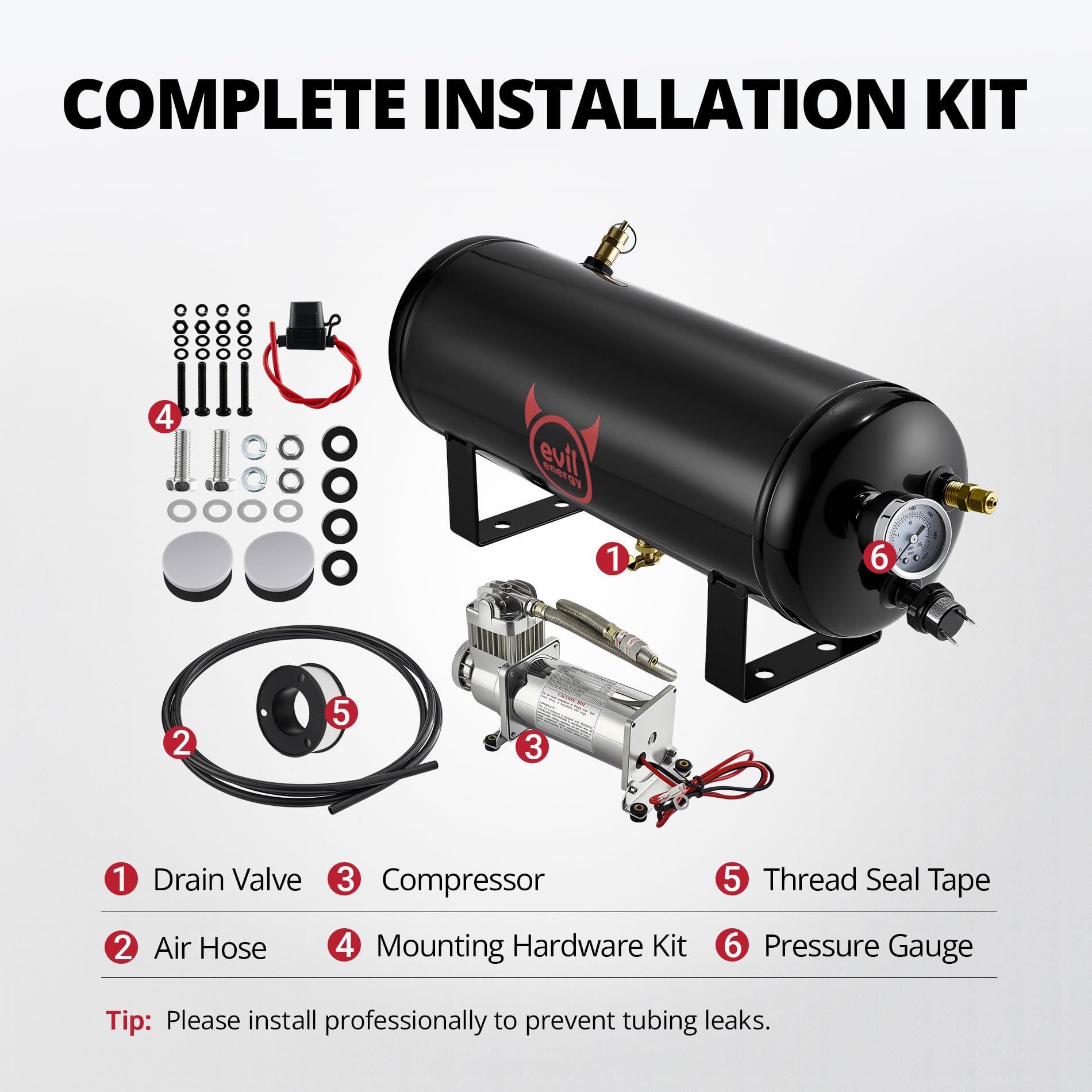 - SUPPORT YOU CAN TRUST: EVIL ENERGY offers reliable customer support for any installation or usage questions. Please confirm size and mounting location before purchase. To keep your air tank in top condition, drain it weekly and ensure professional installation for reliable performance.