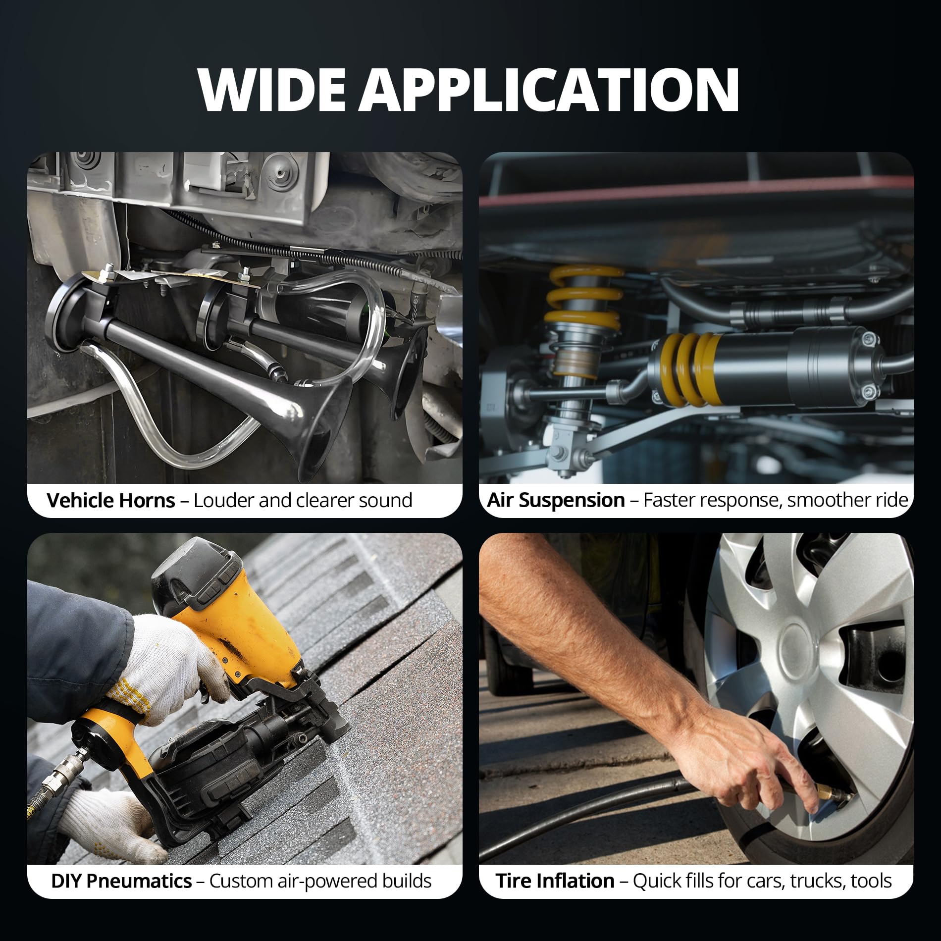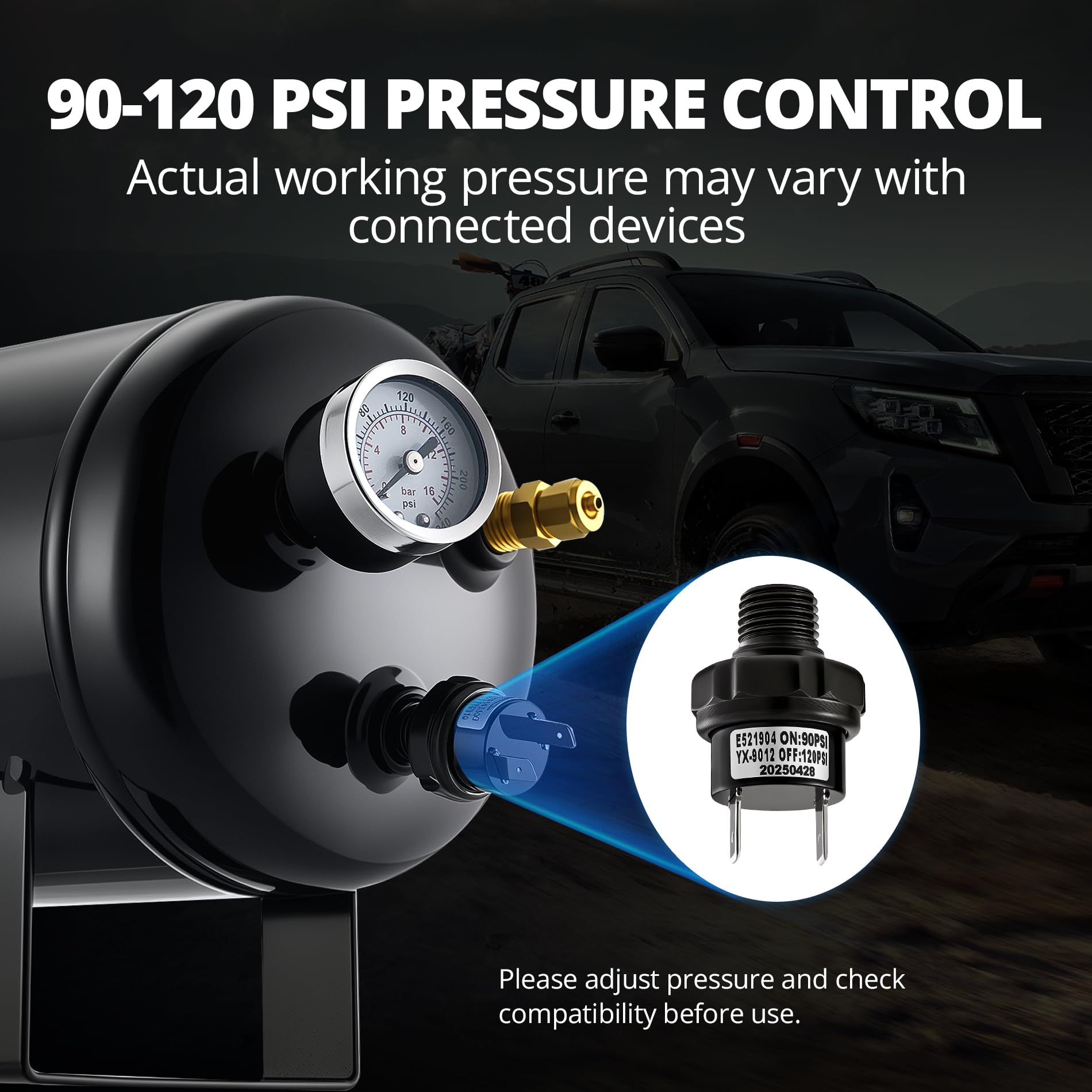 - BUILT FOR LONGEVITY & SAFETY: Designed for lasting performance , this 12V air compressor with tank is crafted from military-grade steel for excellent strength and sealing performance. It ensures safe air storage even under high pressure, effectively preventing cracks, leaks, or structural failures over years of reliable use.