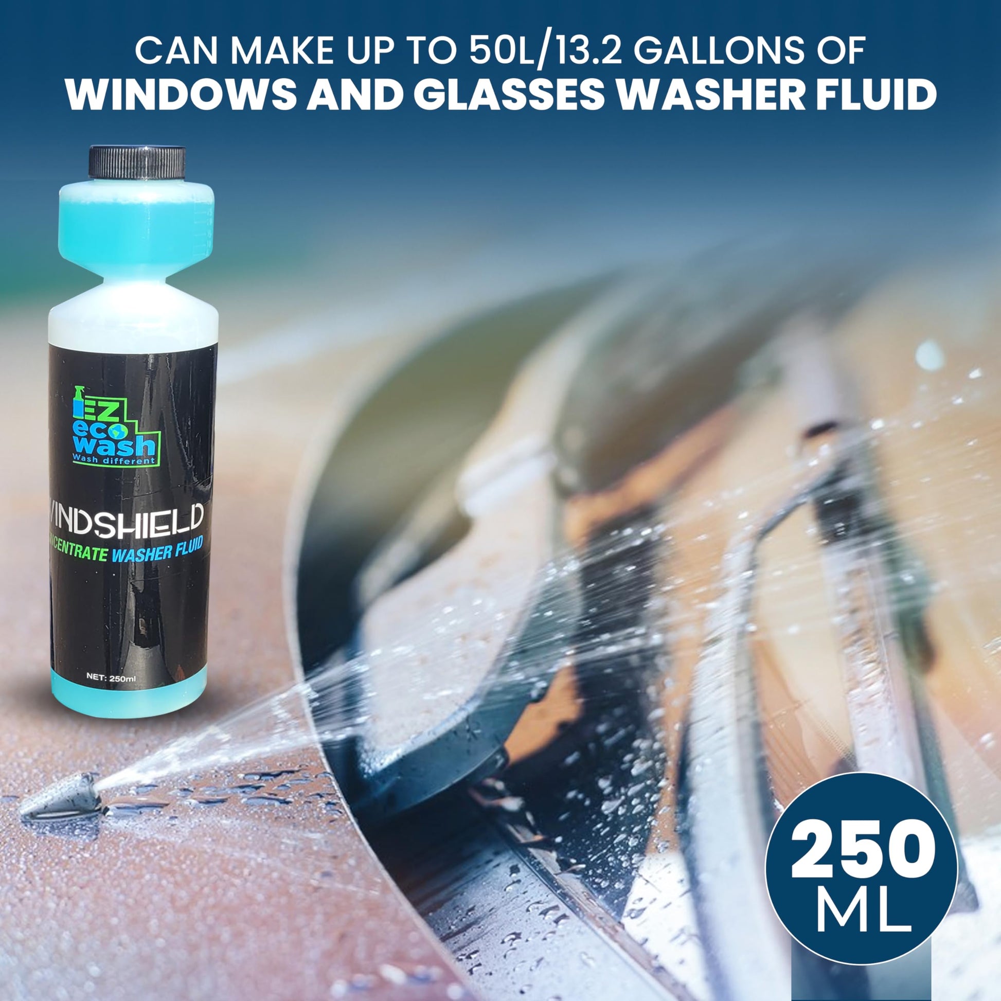 EZ eco wash Windshield washer fluid concentrate - 1:200 High-strength formula (250ml) with built-in pump - Removes dirt, bugs, and oil - safe for all surfaces, Ammonia-free