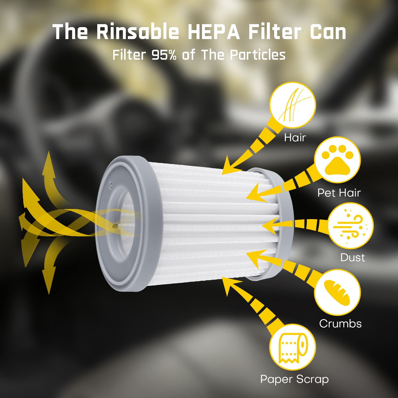 Fanttik 2-Pack Replacement HEPA Filter, Washable and Reusable Filter, Only Compatible with Fanttik V9 and V9 Mate Car Vacuum Cleaner