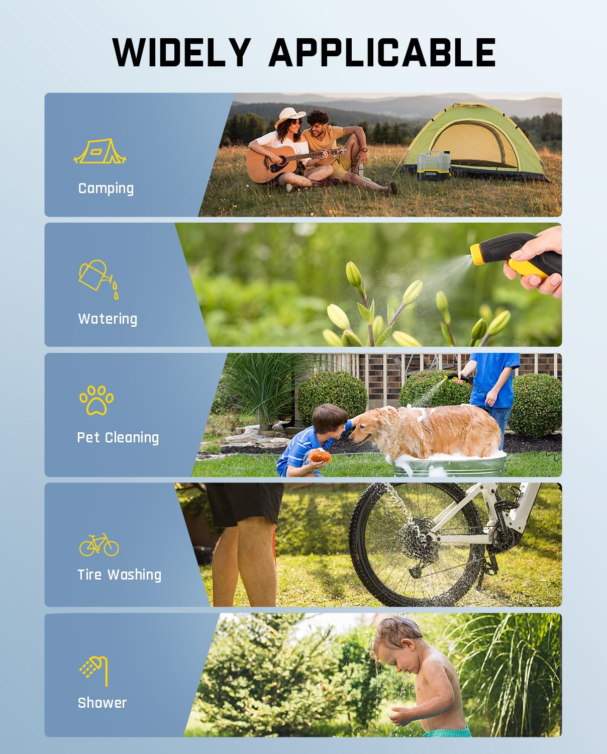 - All-in-one Cleaning Solution for your Outdoor Parties: Featuring an ultra-high security built-in lithium battery, IPX5 waterproof rating and a detachable 8L water tank. Perfect for apartments, camping, and even cleaning bicycle chains and tires