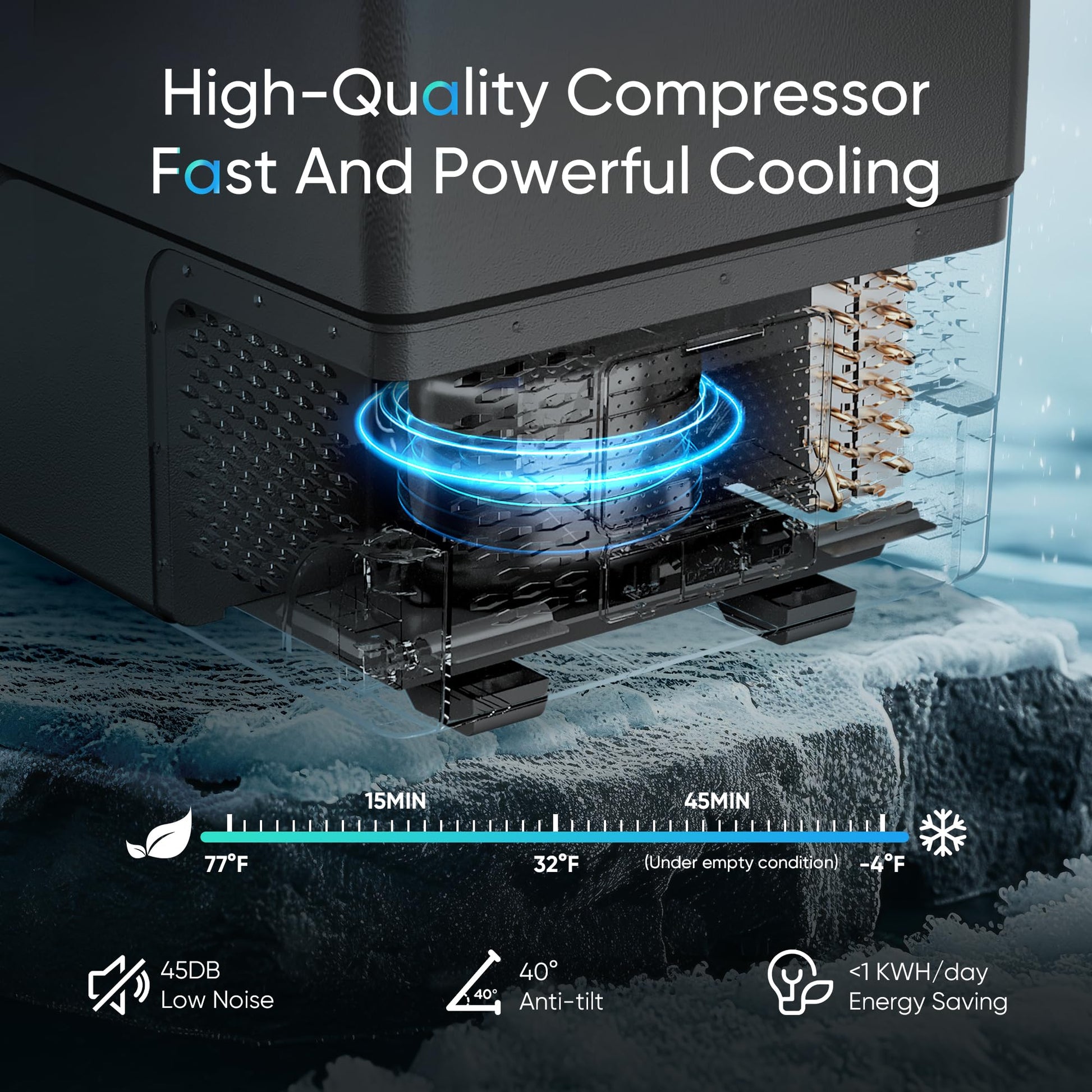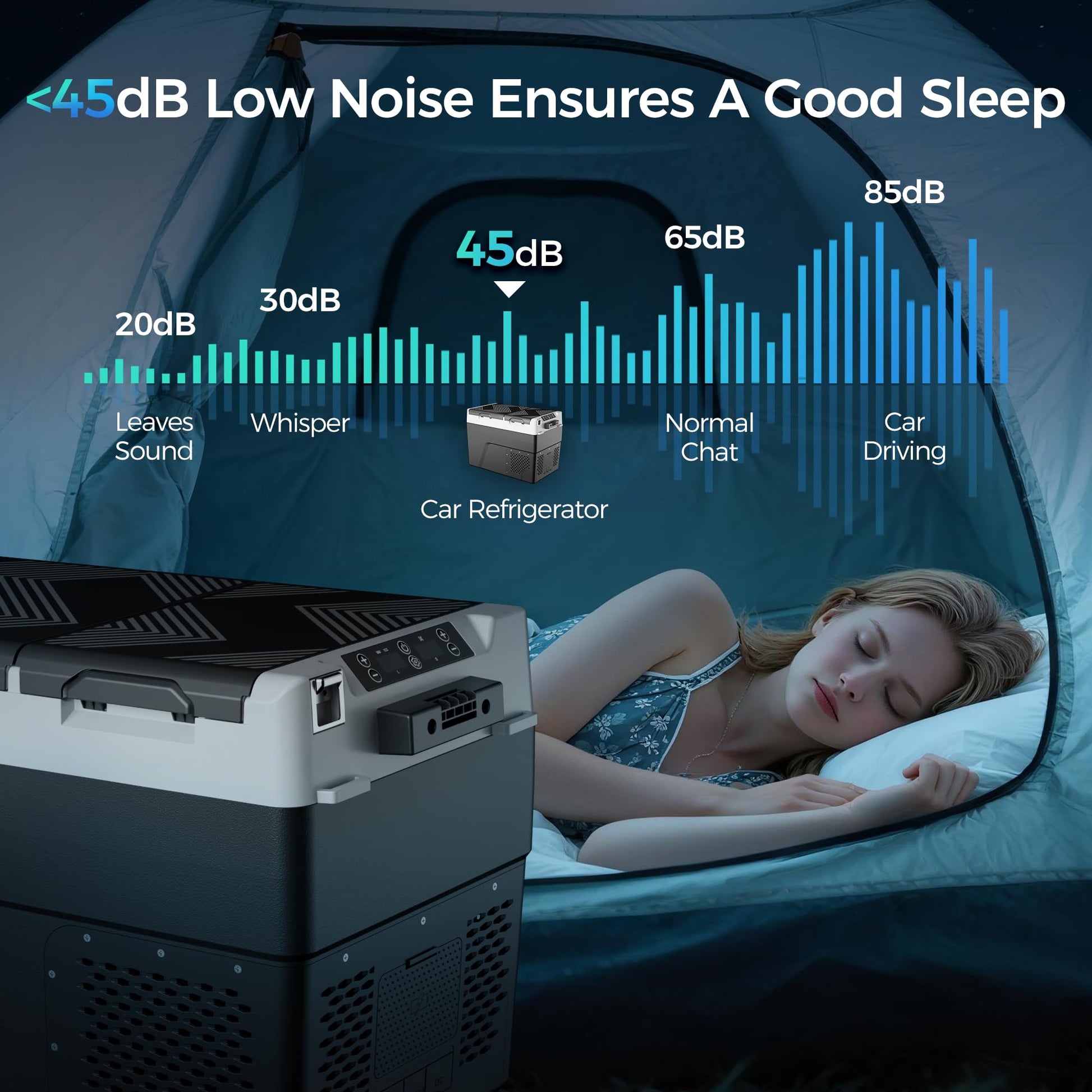 - 45dB Low Noise & Anti-Shaking: This 12v freezer has 4 fixing holes on both sides, which can be firmly secured to the vehicle with ropes—staying stable even in 40° bumpy off-road conditions. The 45dB quiet technology ensures the 12 volt cooler won’t disturb driving or rest, keeping you safe and comfortable.