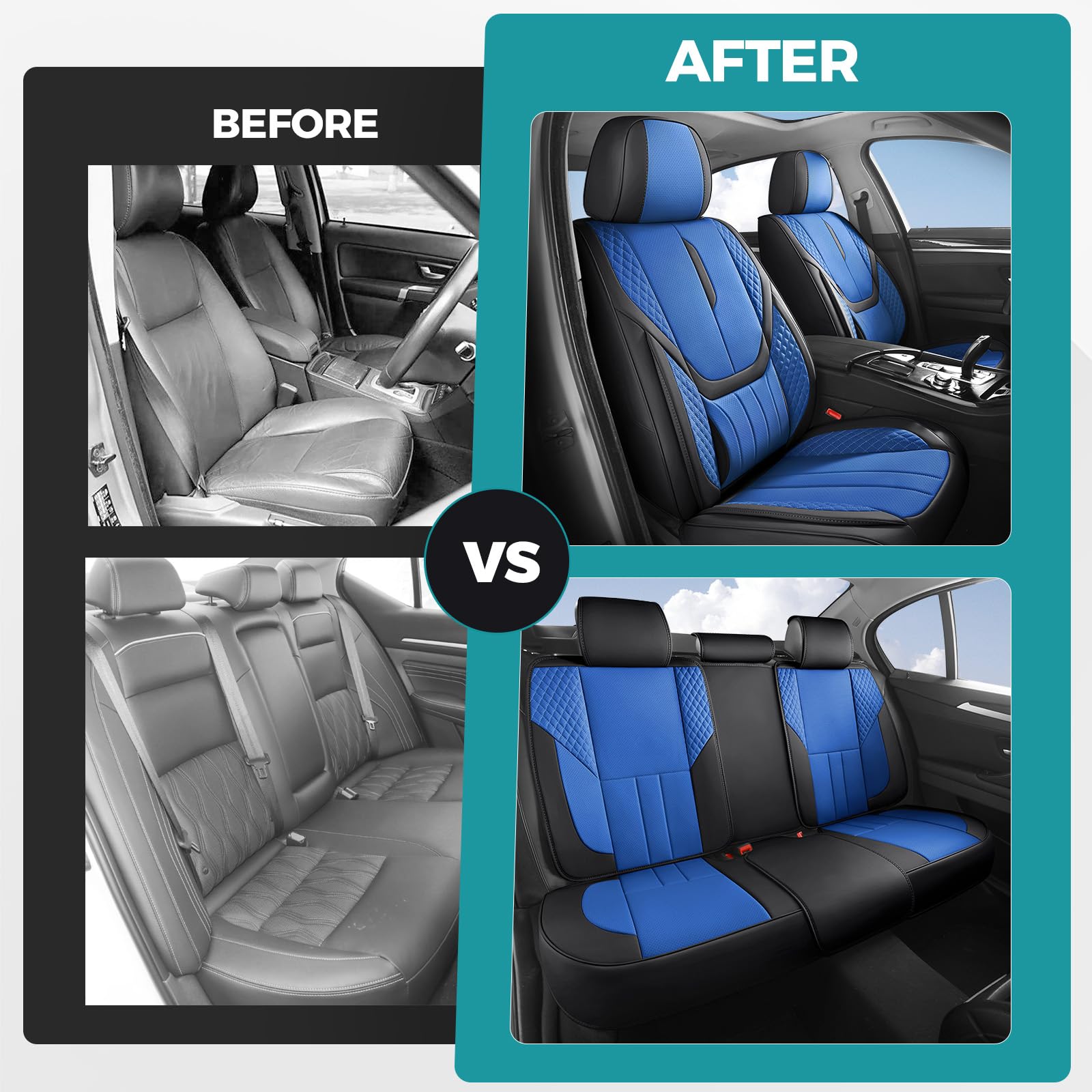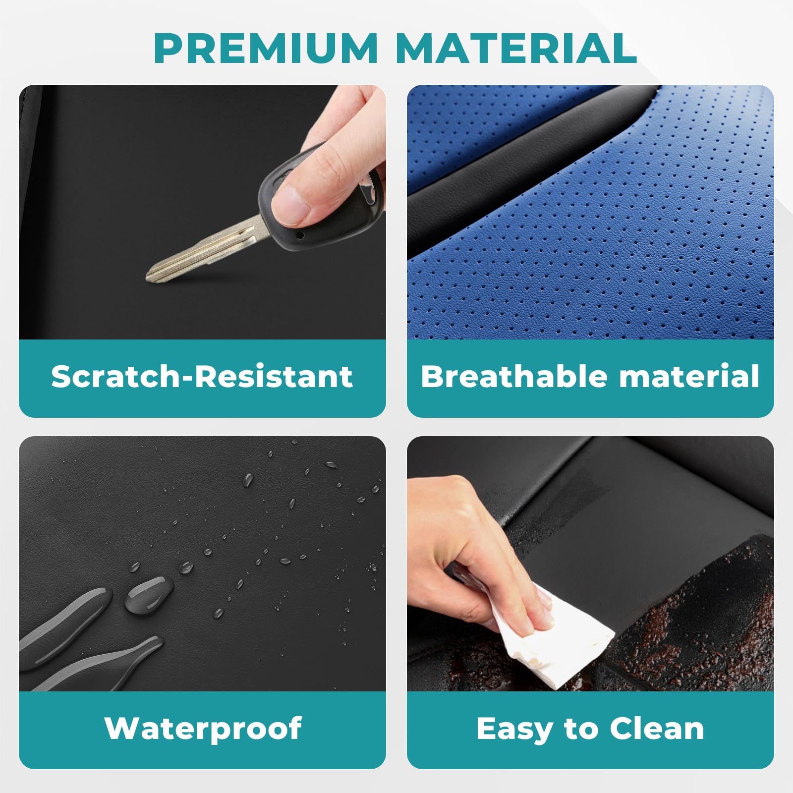 FEINEPRO Car Seat Covers Full Set - Universal Seat Covers for Cars SUV Truck – Faux Leather Automotive Seat Covers, Breathable & Waterproof Front and Rear Seat Protectors, Fit for Most Cars-BlackBlue