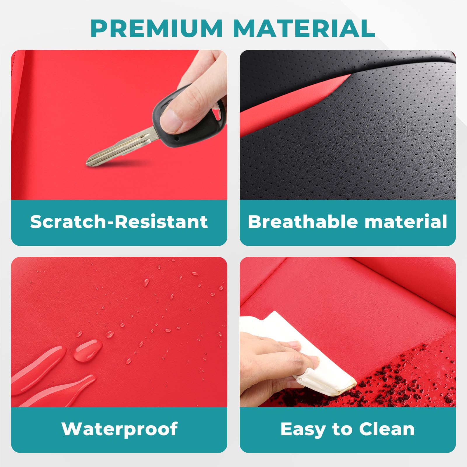 FEINEPRO Car Seat Covers Full Set - Universal Seat Covers for Cars SUV Truck – Faux Leather Automotive Seat Covers, Breathable & Waterproof Front and Rear Seat Protectors, Fit for Most Cars-Redblack