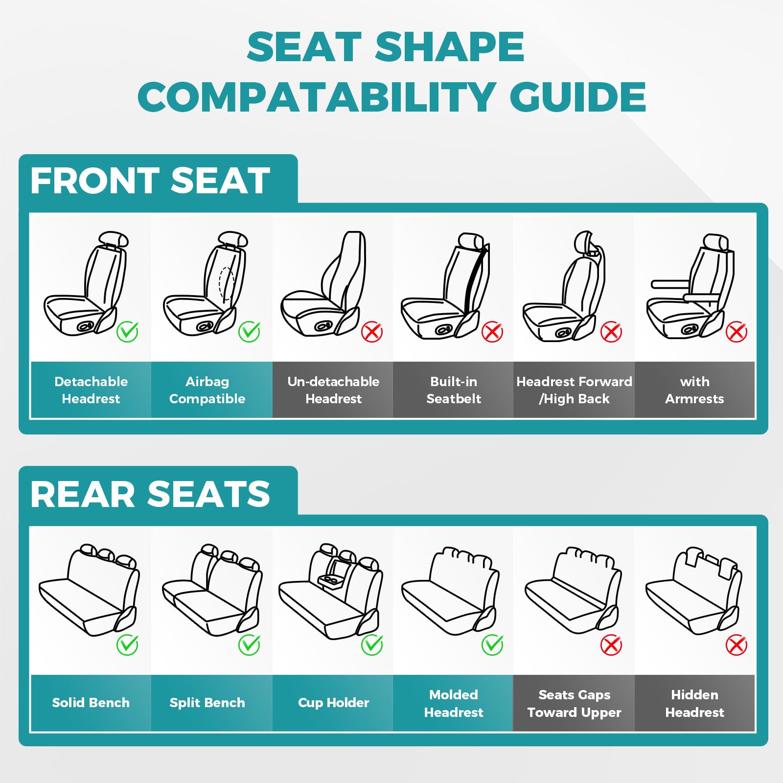 - 【Easy to Install – Universal Fit】Includes 2 front and 3 rear seat covers for car, compatible with most sedans, SUVs, pickups, and trucks. Quick 30-minute install with included tools and video guide.