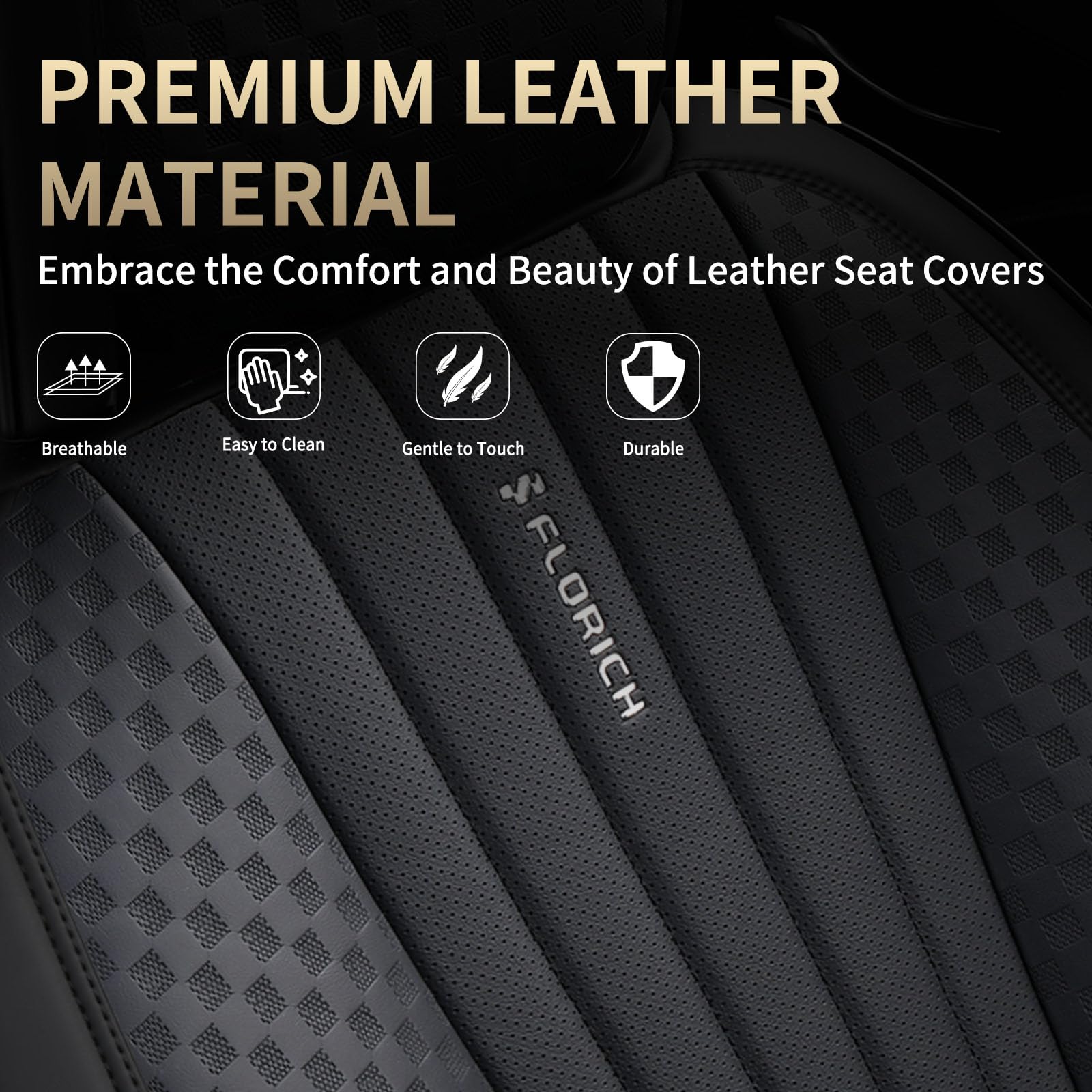 - High-Quality Breathable Leather: Crafted from premium leatherette, these FLORICH front seat covers offer a luxurious look and feel similar to genuine leather. The material is durable, resistant to wear and tear, ensuring long-lasting use for your car seats.