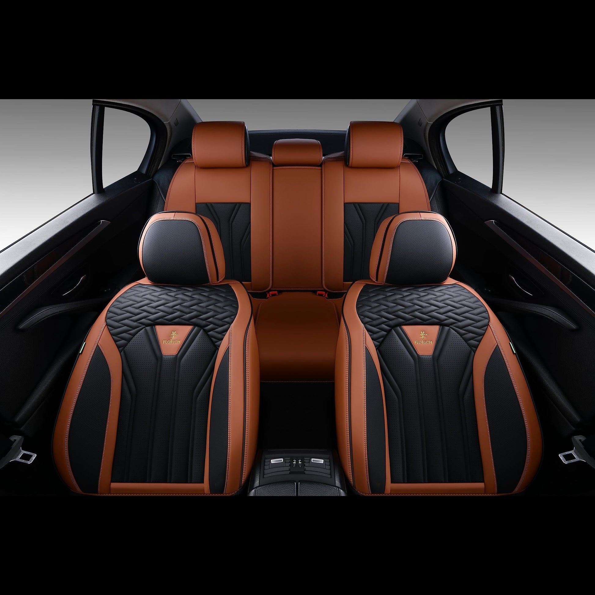 FLORICH Leather Seat Covers, Seat Covers Full Set, Car Seat Protectors 5 Seats,Automotive Seat Covers Fit for Most Cars Trucks-Brown&Black