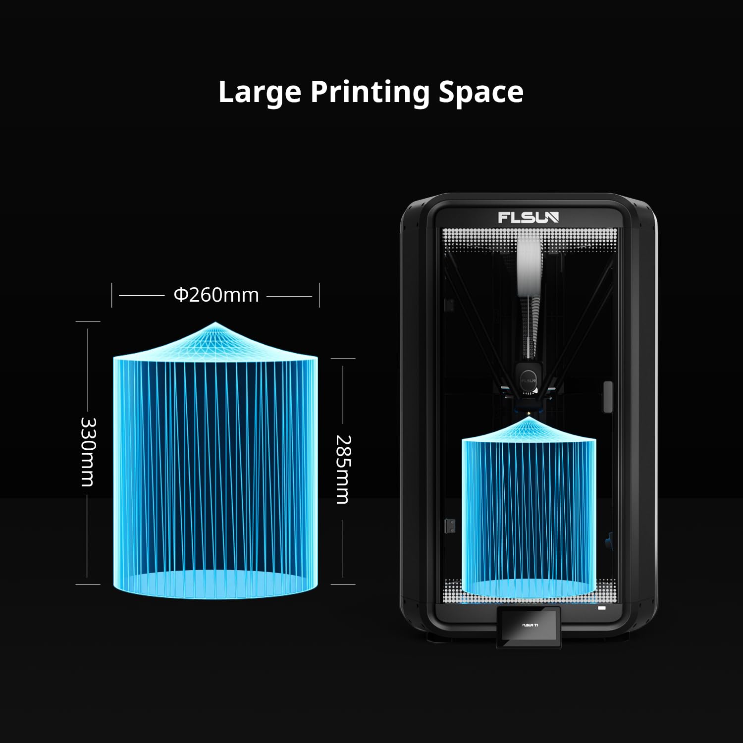 - The FLSUN T1 Pro enclosed 3D printer features an intelligent assist system for consistently high-quality results. Automatic bed leveling and advanced vibration compensation ensure smooth, precise layers every time. The power-loss recovery function lets you resume printing right where it left off after an outage—no failed prints or wasted time. Filament detection actively monitors material status and automatically pauses the job if an issue occurs, helping you avoid print defects and filament waste.