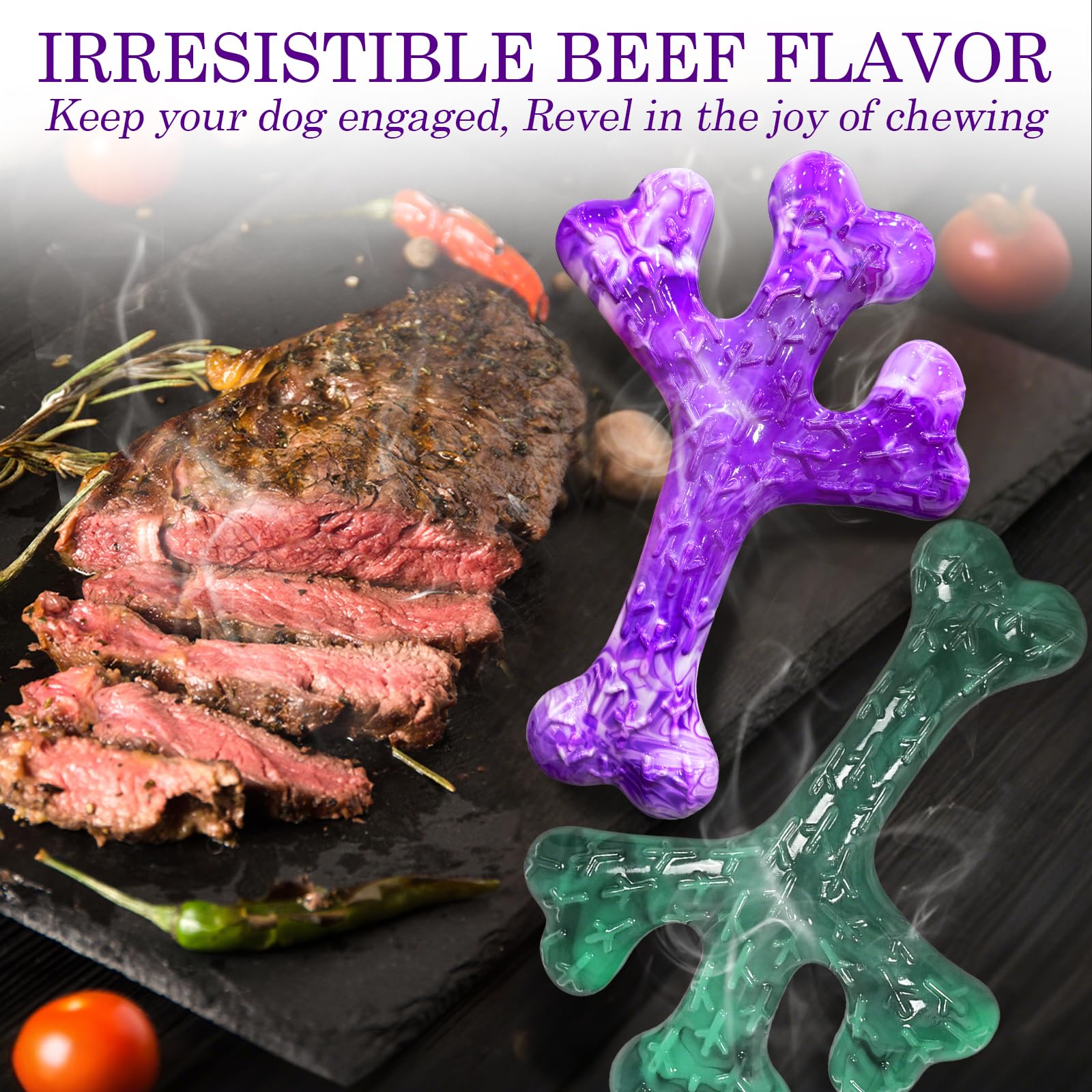 - BEEF FLAVOR: 2 pack dog toys for large dogs are infused with the real beef flavor, making them irresistible to dogs. Your furry friend won't be able to resist sinking their teeth into these toys, providing endless entertainment and peace of mind even when you're on the go.