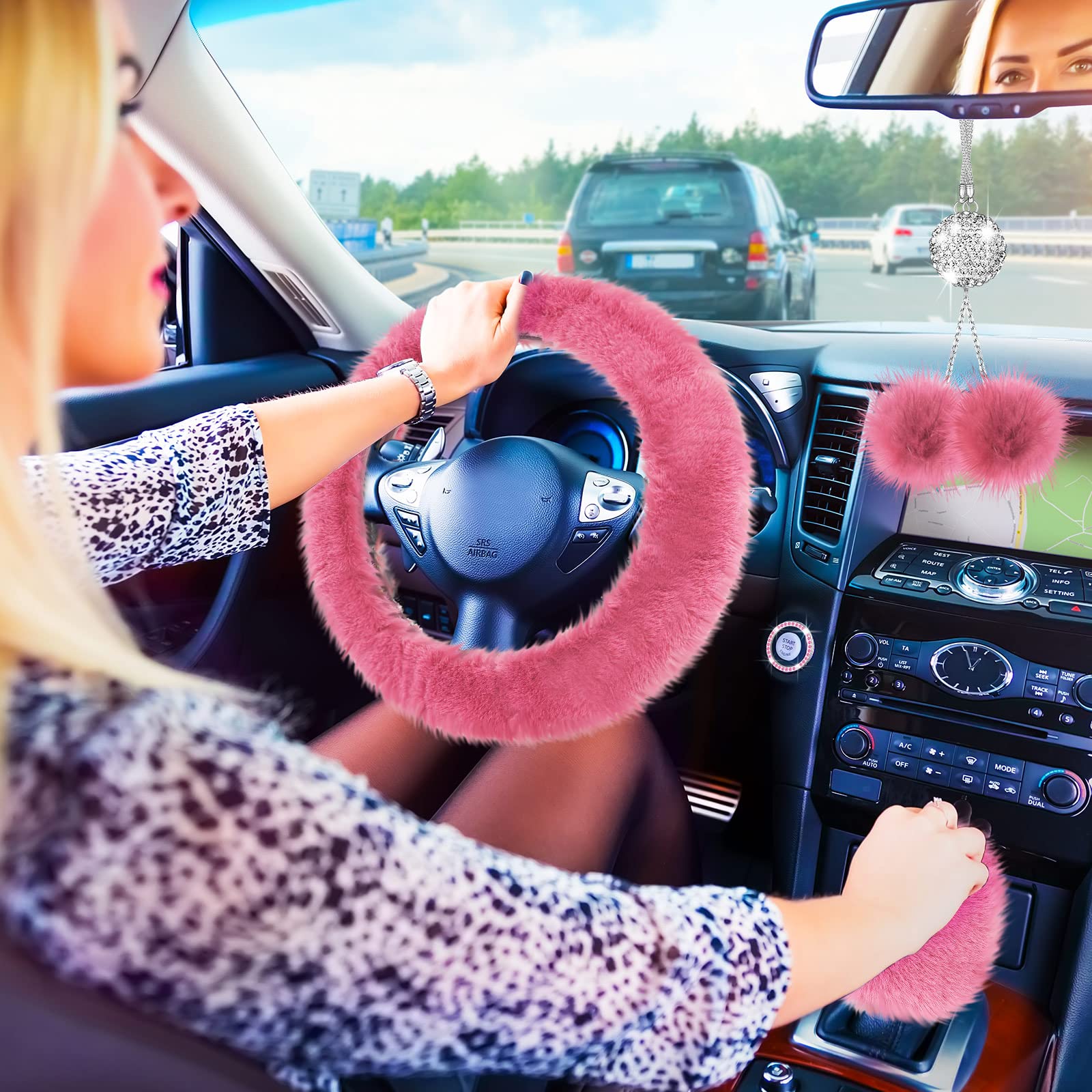 - Pink Plush Design: the steering wheel cover, handbrake cover, gear shift cover are designed with plush on the surfaces, which are soft and comfortable to touch, making it hard to feel too cold or too hot when you touch, and they can cover original steering wheel, handbrake and gear shift, neat and good looking