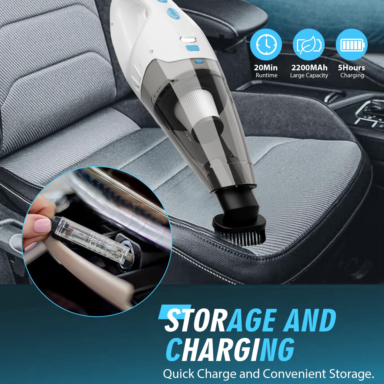 - 【Powerful Suction and LED Light】The car hand vacuum has 6kpa suction power to help you deal with a variety of dirt such as small debris, hair and food residue. The powerful motor can help you to do all-around cleaning. The bright LED light makes the hand vacuum cordless rechargeable easy to clean in dark areas, perfect for cleaning your car at night. Exquisite workmanship provide an unparalleled experience to you.