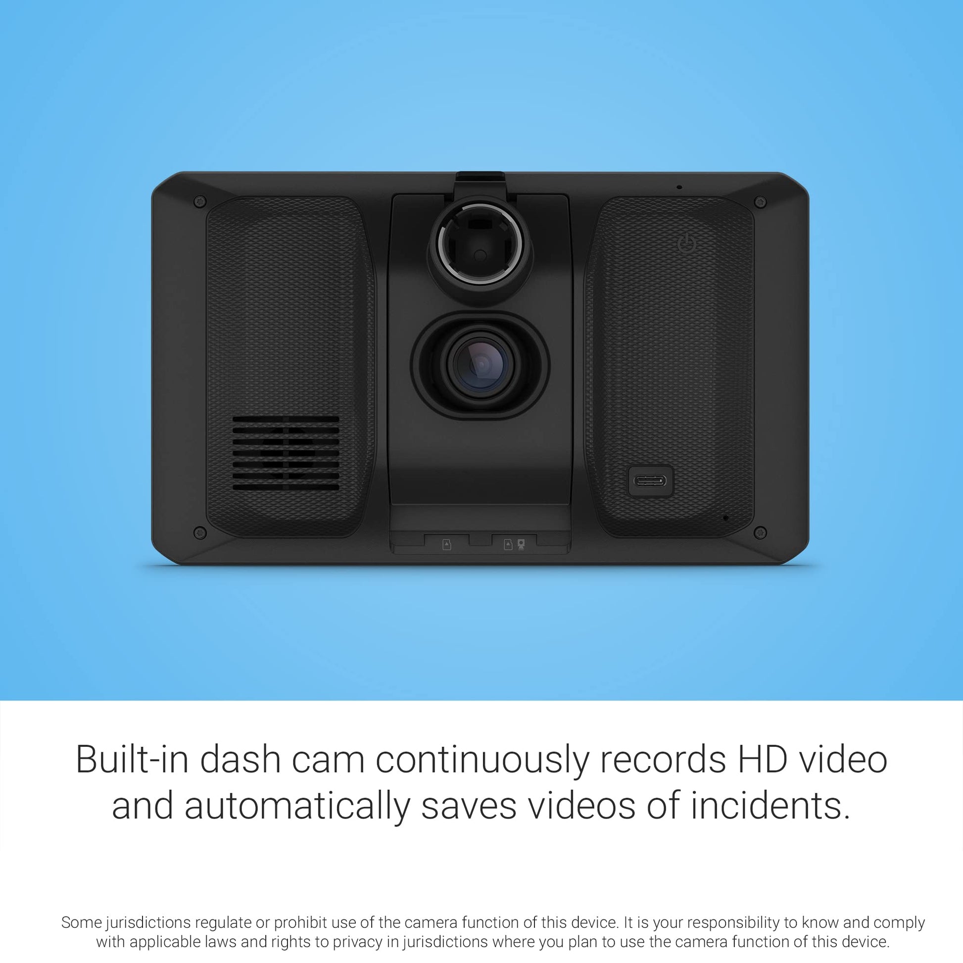 - Built-in dash cam (Some jurisdictions regulate or prohibit use of the camera function of this device. It is your responsibility to know and comply with applicable laws and rights to privacy in jurisdictions where you plan to use the camera function of this device) serves as your eyewitness on the road; saved video clips automatically upload to the secure online Vault to easily view and share via the Garmin Drive app on your compatible smartphone