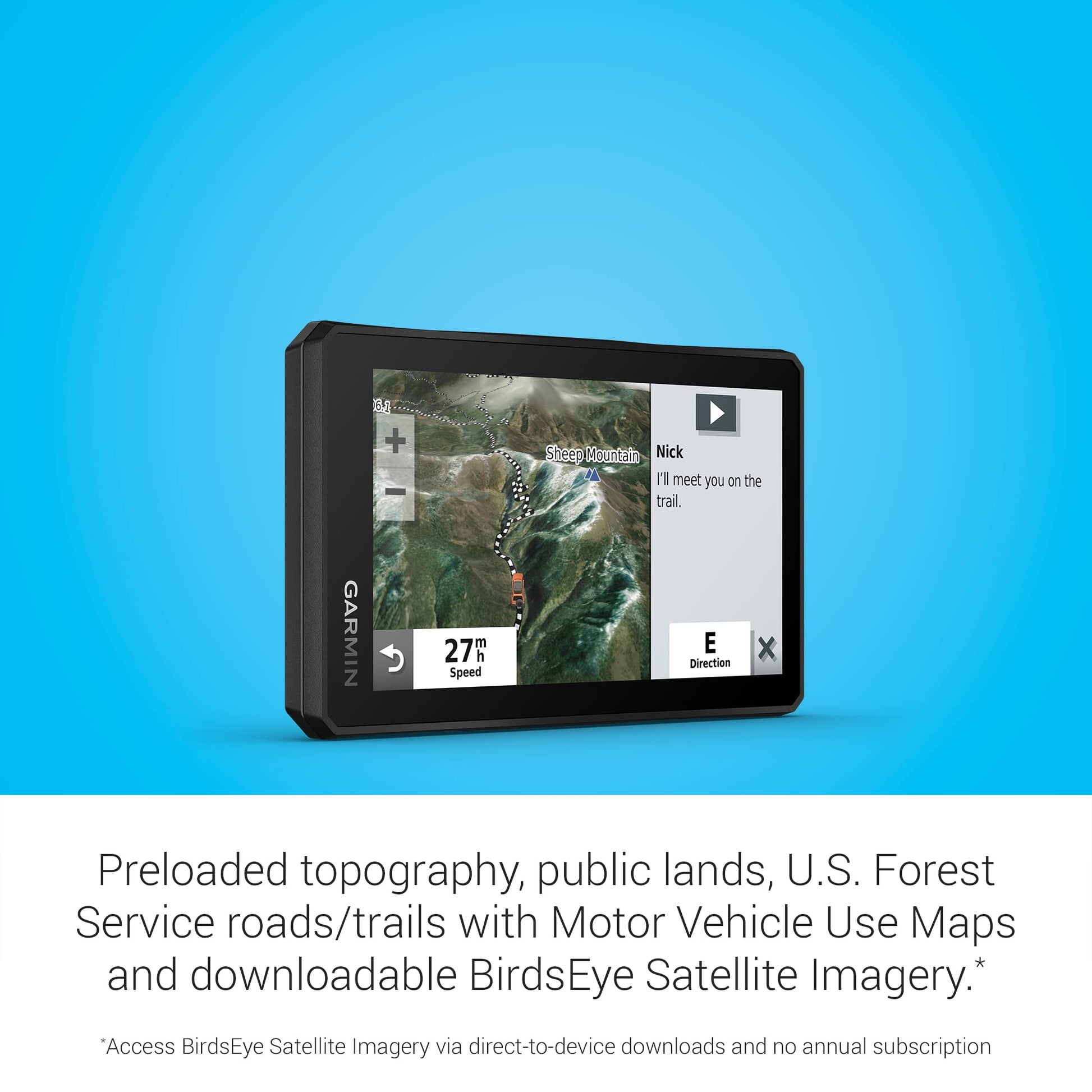 - Preloaded topographic maps of North and Central America, street maps of North America, U.S. public and private land boundaries, U.S. Forest Service roads and trails with Motor Vehicle Use Maps, and downloadable, subscription-free BirdsEye Satellite Imagery