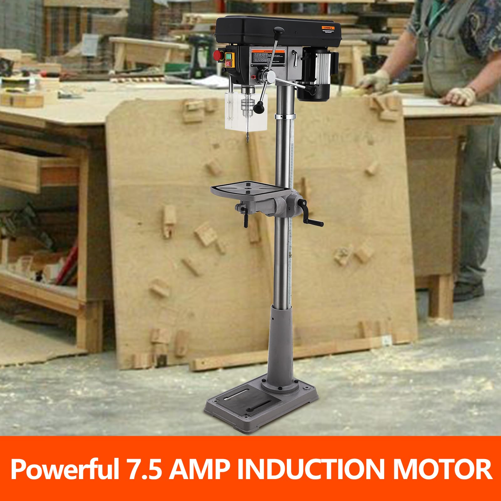- Powerful 13 in 7.5A Drill Press: The equipped powerful 7.5A induction motor ensure plenty of power to drill through various materials, such as metal, wood, etc. It meets your processing and DIY needs.