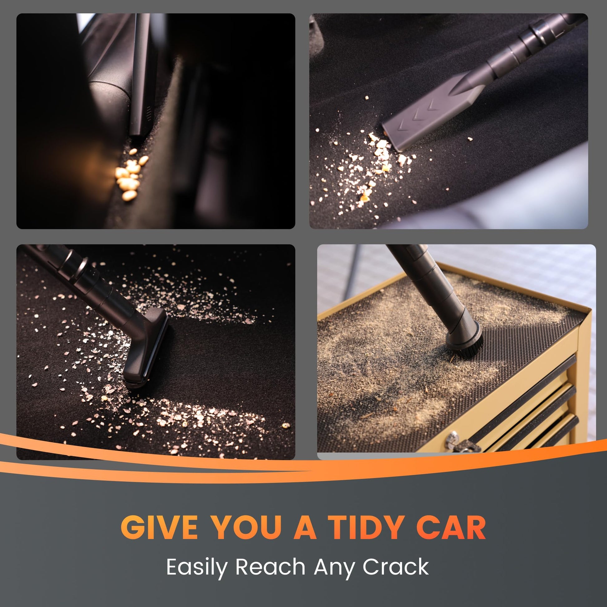 - Strong Motor: The powerful motor delivers 20 KPA strong suction ensures cleaning performance tailored to different cleaning needs. A perfect car detailing vacuum for the garage.
