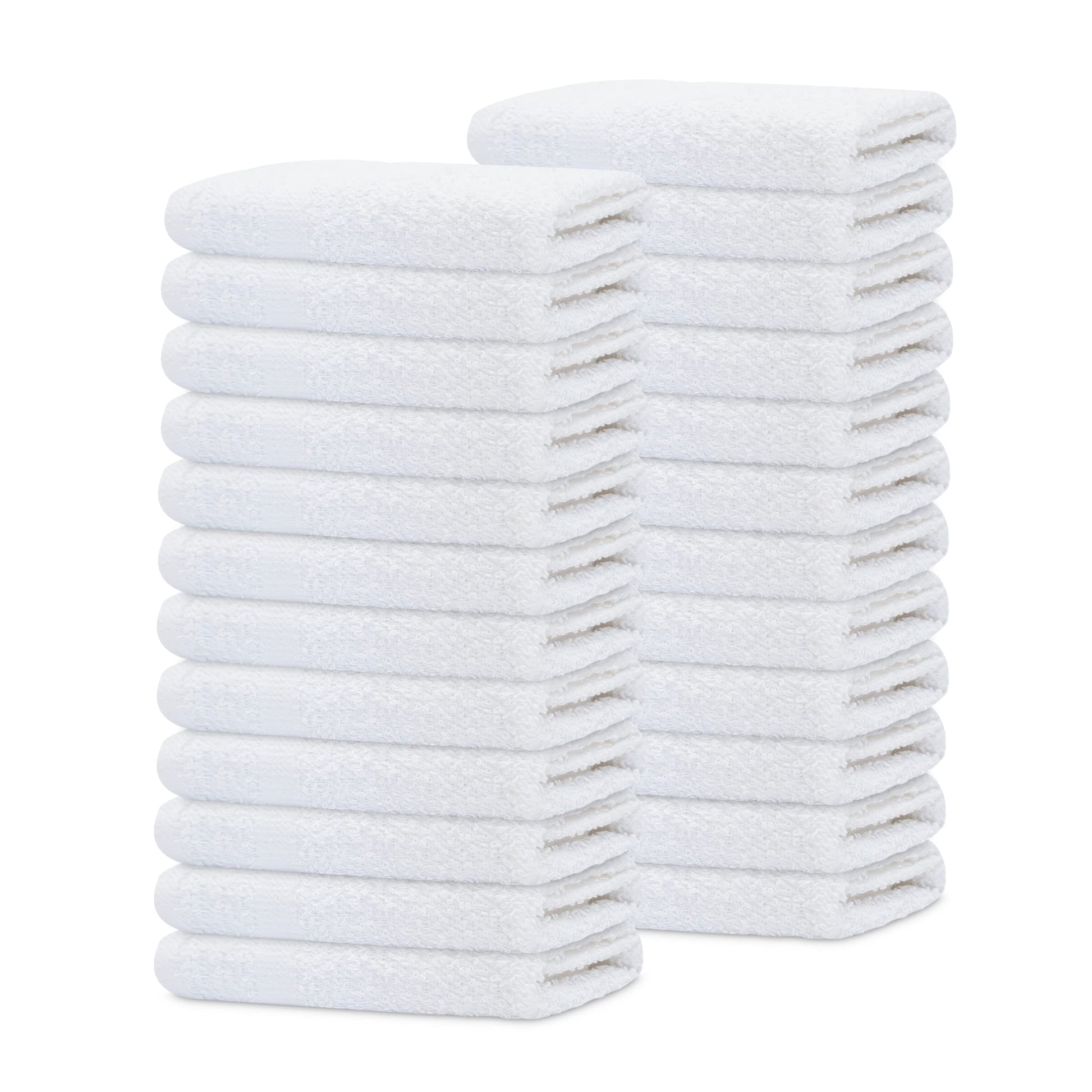 - SUPER VALUE BUNDLE - The cleaning washcloths 12x12 Pack of 480 cotton cloth are the perfect small-sized towels to keep in your kitchen, gym, Salon, bathroom, or any place where a small white towels is needed. They made these soft, lightweight towels from a cotton blend. This cheap towel is lightweight standard 1 lb per dozen.